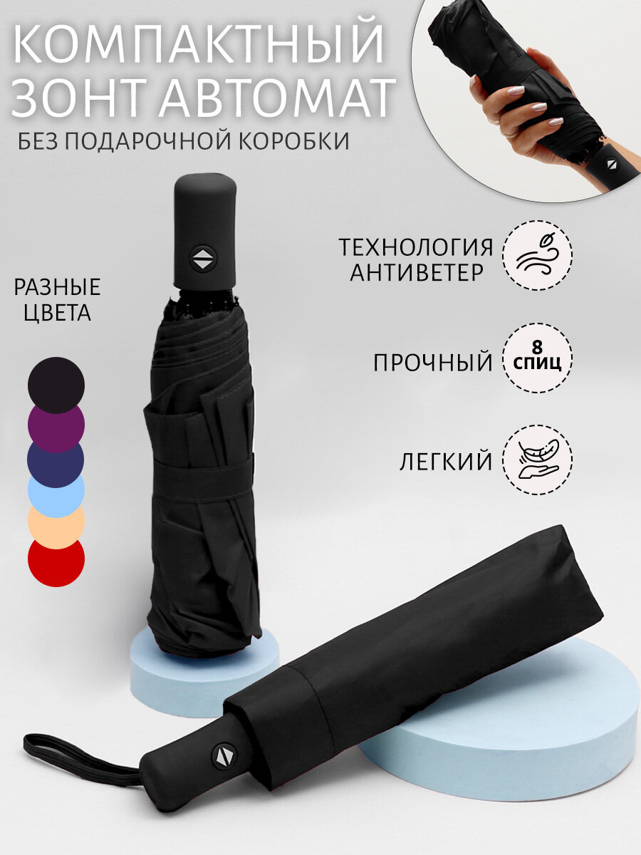 Купить Зонт Автоматический Складной (черный) / полный автомат, антиветер, маленький, карманный, женский в сумочку, мужской