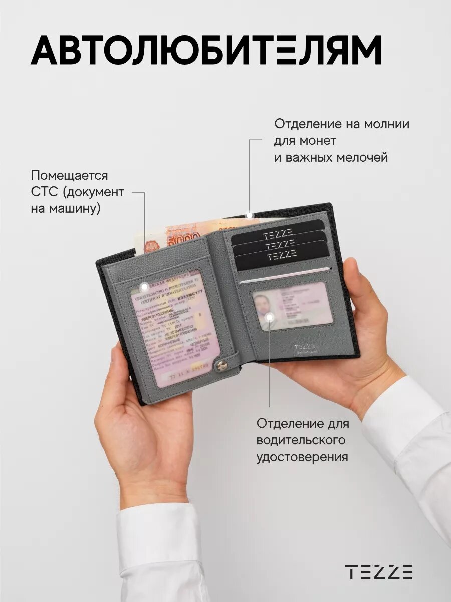 Кошелек из натуральной кожи для наличных, карт и документов интересное: