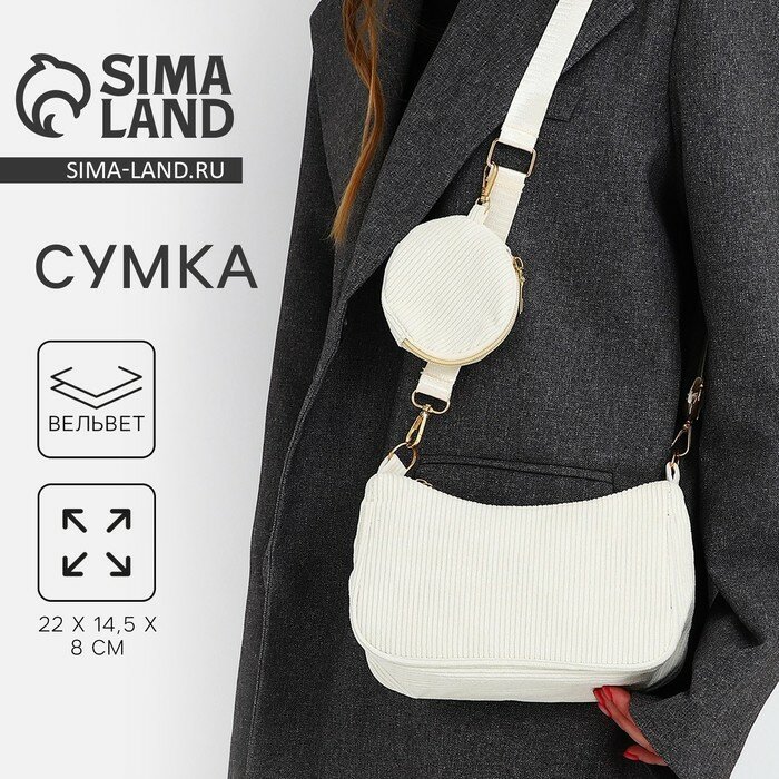 Сумка велюровая багет, цвет молочный 22*14.5*8 см Nazamok 9951487
