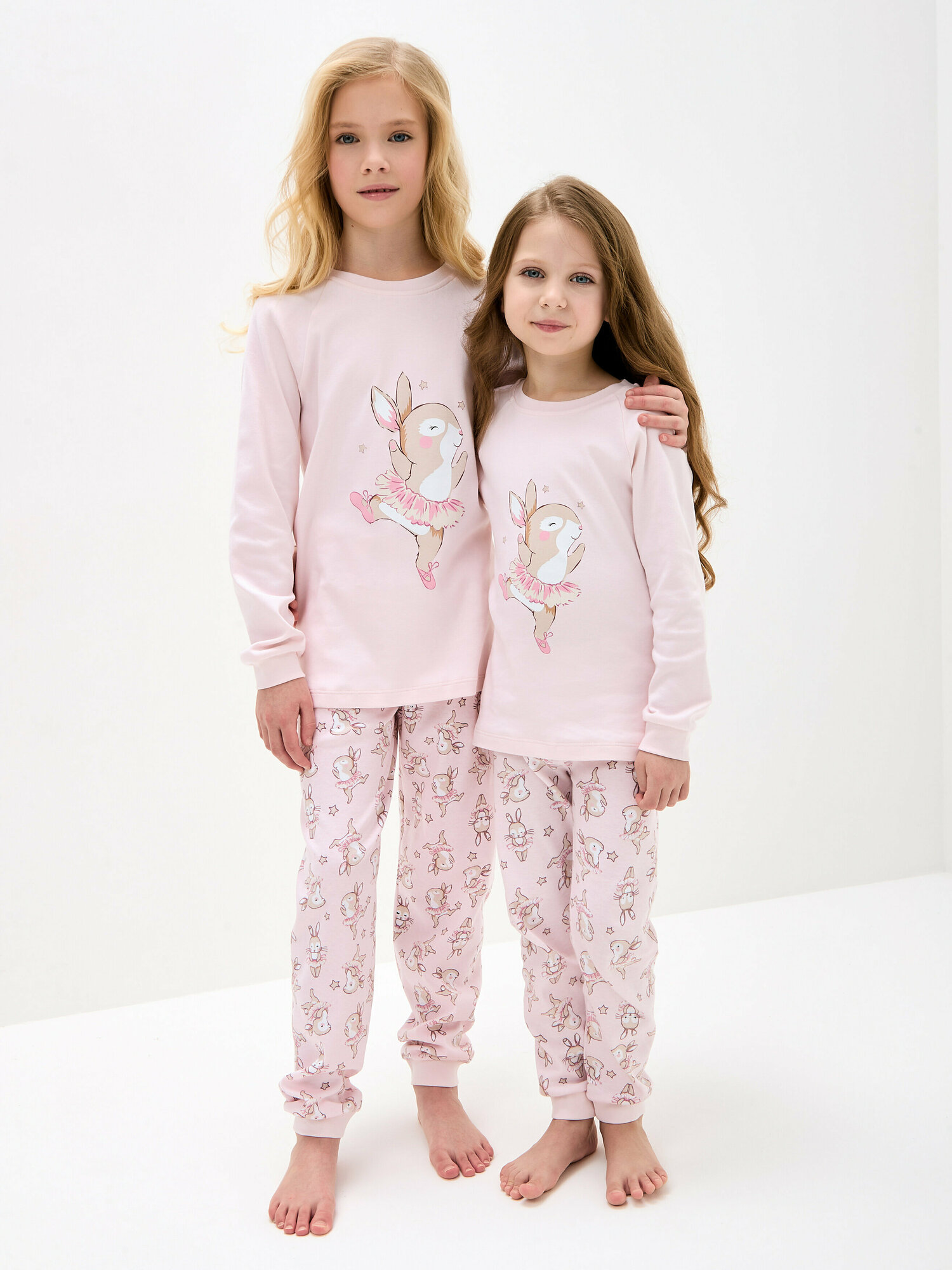 Пижама для девочки,KOGANKIDS,пудровый набивка зайчики, 116 / 6 лет