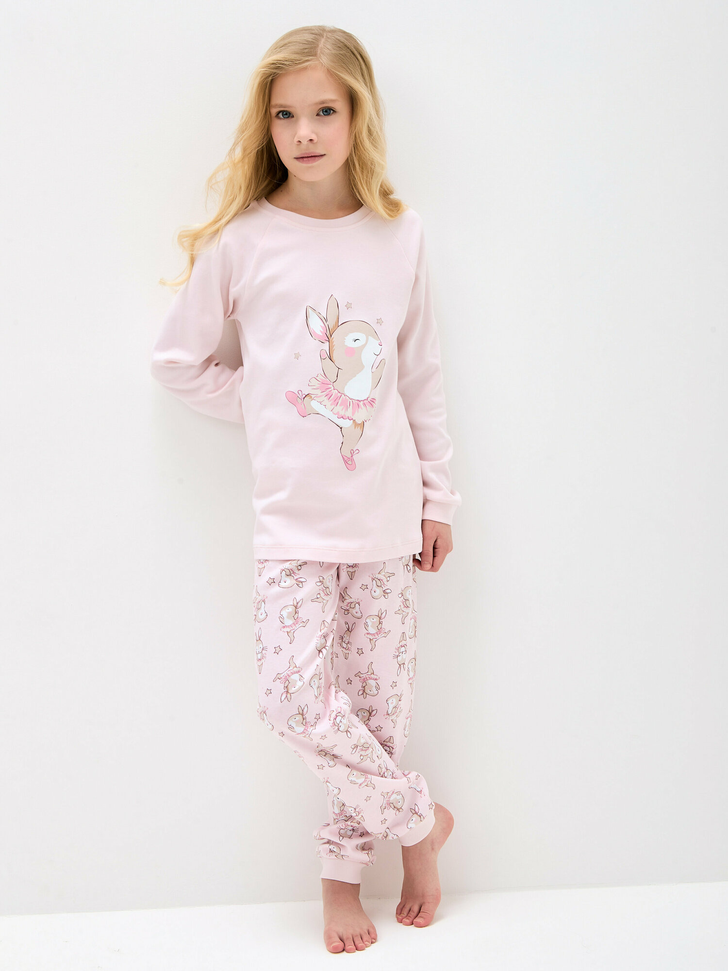 Пижама для девочки,KOGANKIDS,пудровый набивка зайчики, 128 / 8 лет
