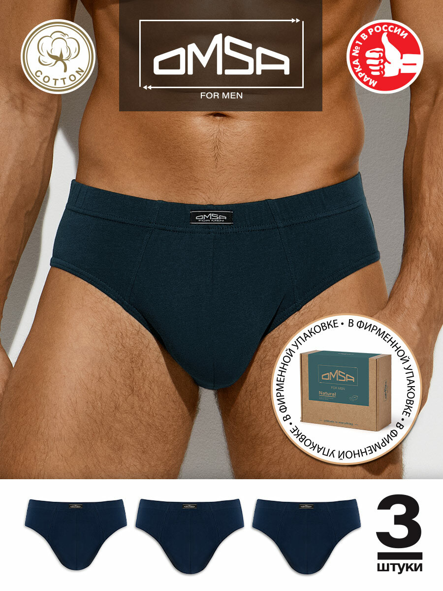 Трусы мужские OMSA OmB 1223 Слипы с закрытой резинкой Blu Scuro 50(XL) комплект 3шт