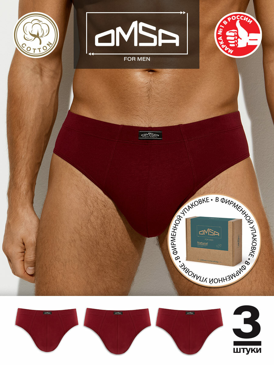 Трусы мужские OMSA OmB 1223 Слипы с закрытой резинкой Bordo 48(L) комплект 3шт