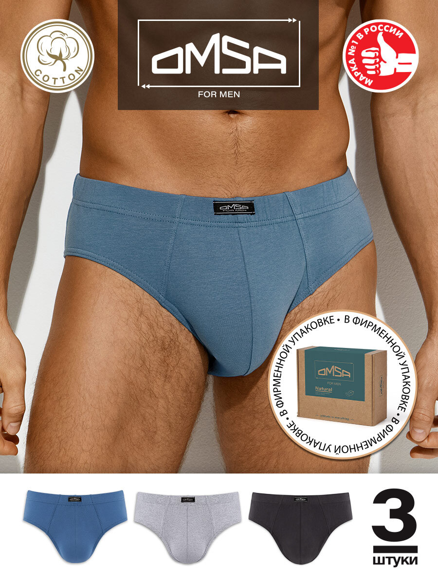 Трусы мужские OMSA OmB 1223 Слипы с закрытой резинкой, COTTON Grigio Scuro/Militari/Jeans 46(M) комплект 3шт