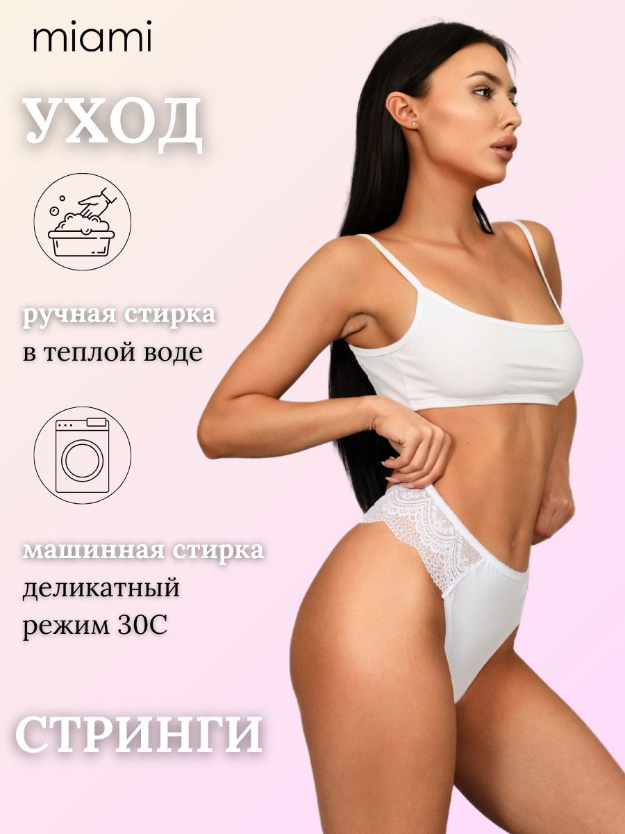 СохранитьТрусы женские стринги, размер 62, высокая посадка, Miami, кружево, хлопок, белый интересное: