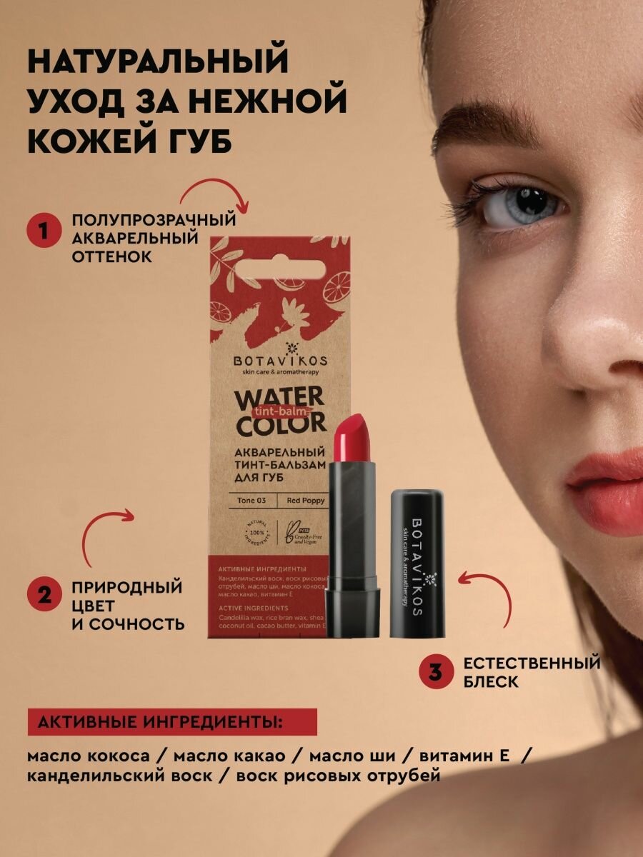 Акварельный тинт-бальзам для губ Botavikos Красный мак, тон 3