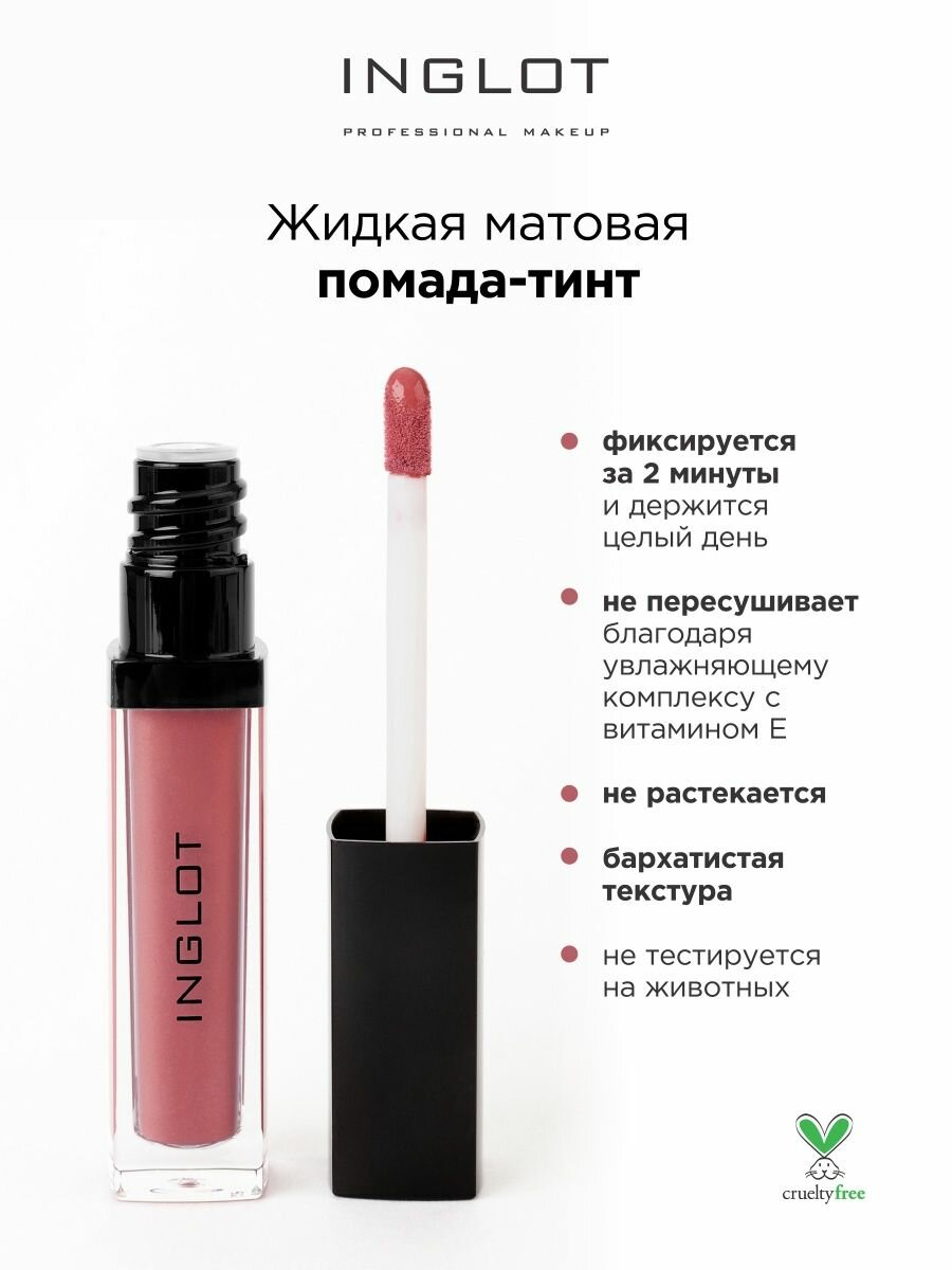 Помада жидкая матовая Inglot тинт 21, гипоалергенная
