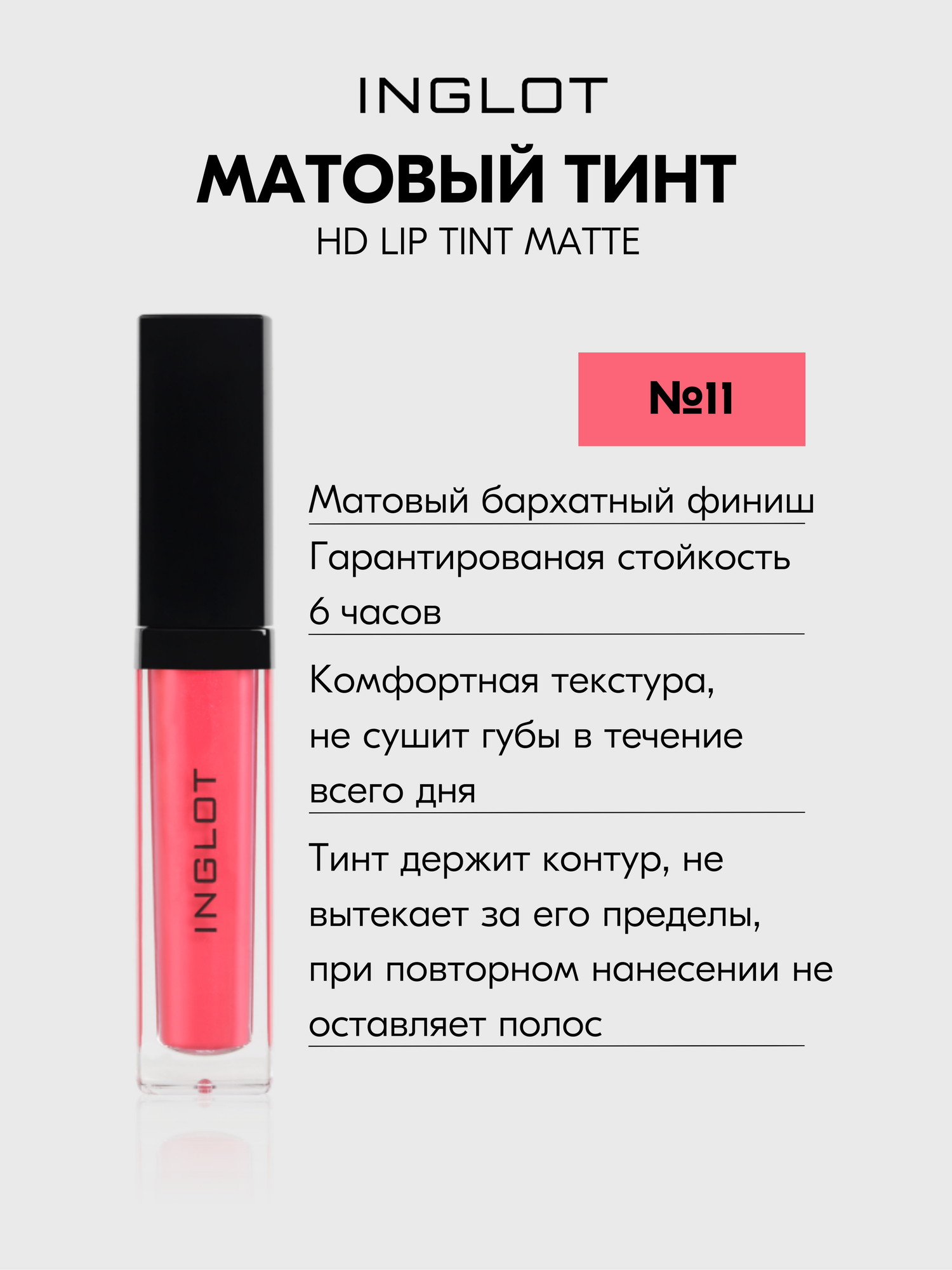 Купить Матовая помада INGLOT жидкая, тинт стойкий с аппликатором HD Lip Tint Matte №11