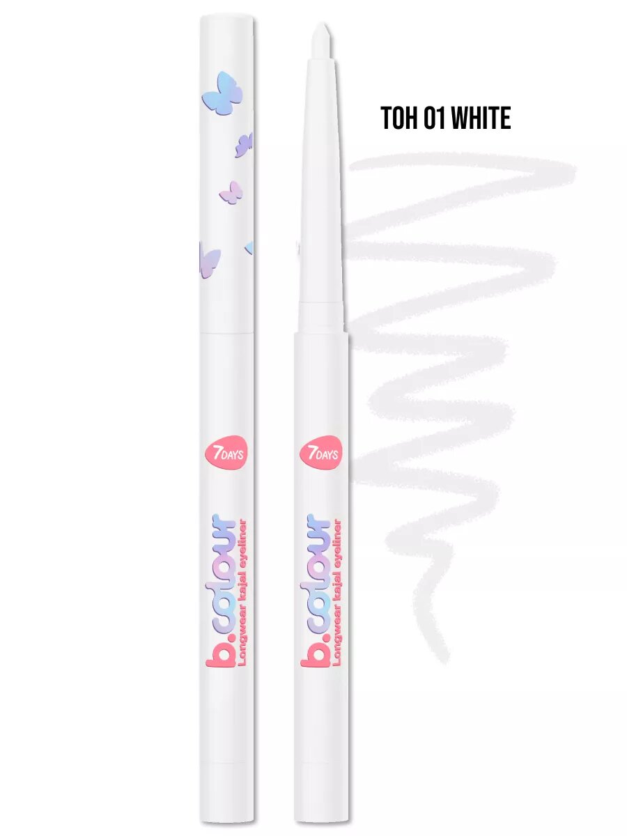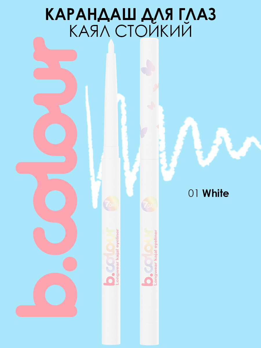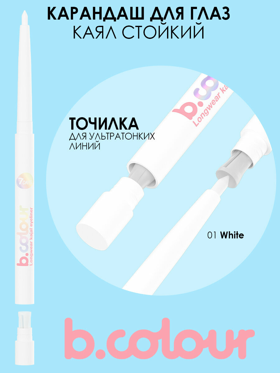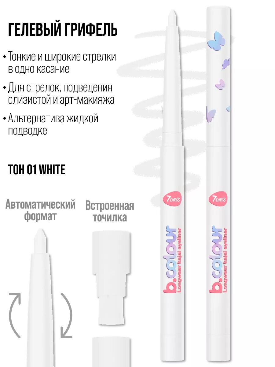 Карандаш для глаз белый 7DAYS B.COLOUR каял водостойкий автоматический, лайнер 01 WHITE