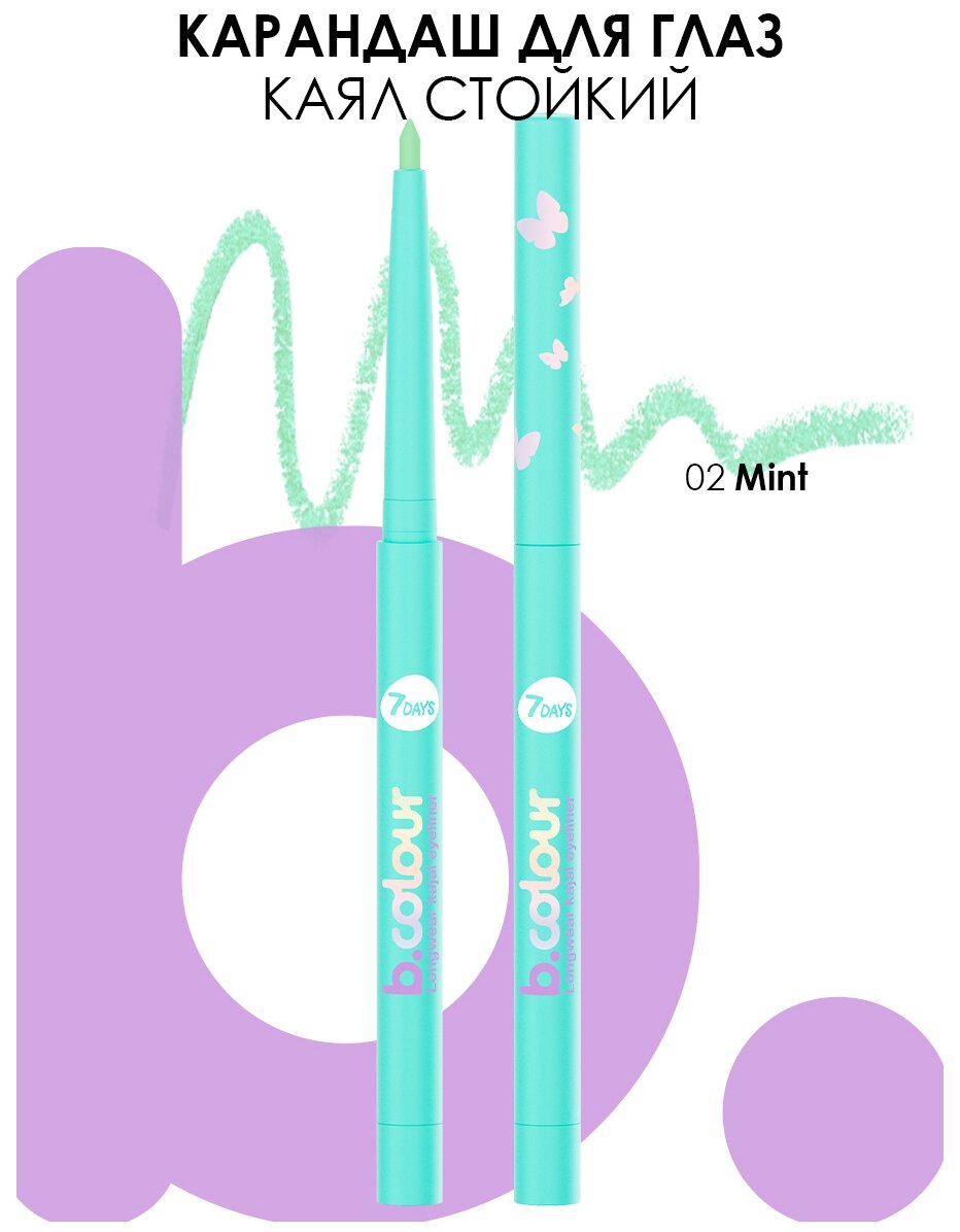 Купить Карандаш для глаз 7Days B.Colour, пастельный, тон: 02 Mint, 0.25г