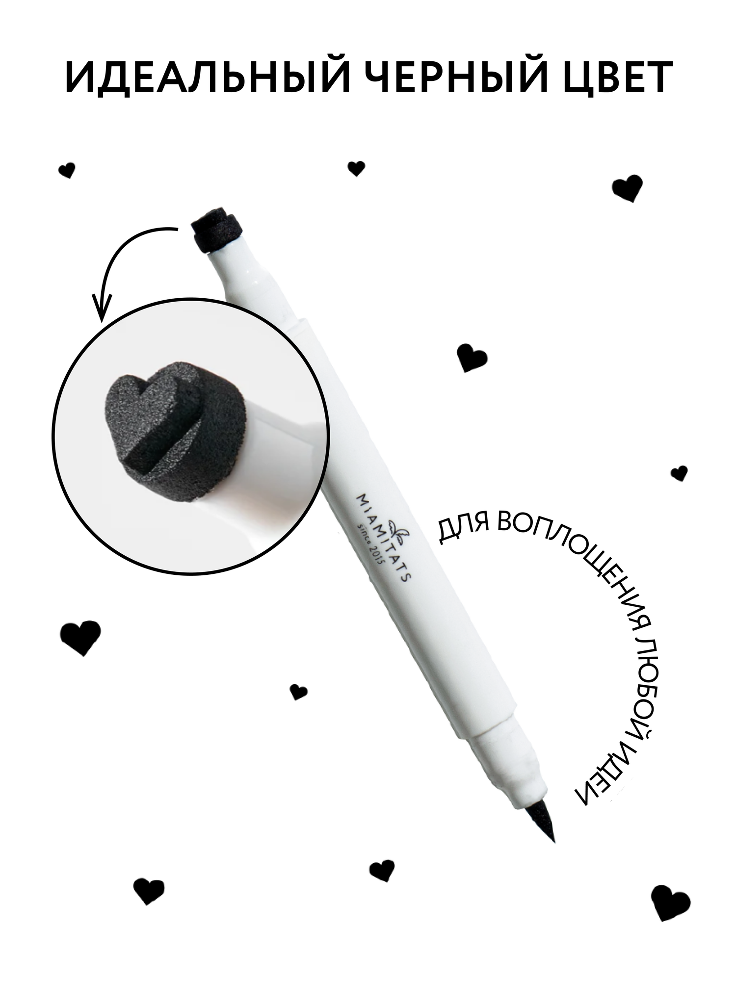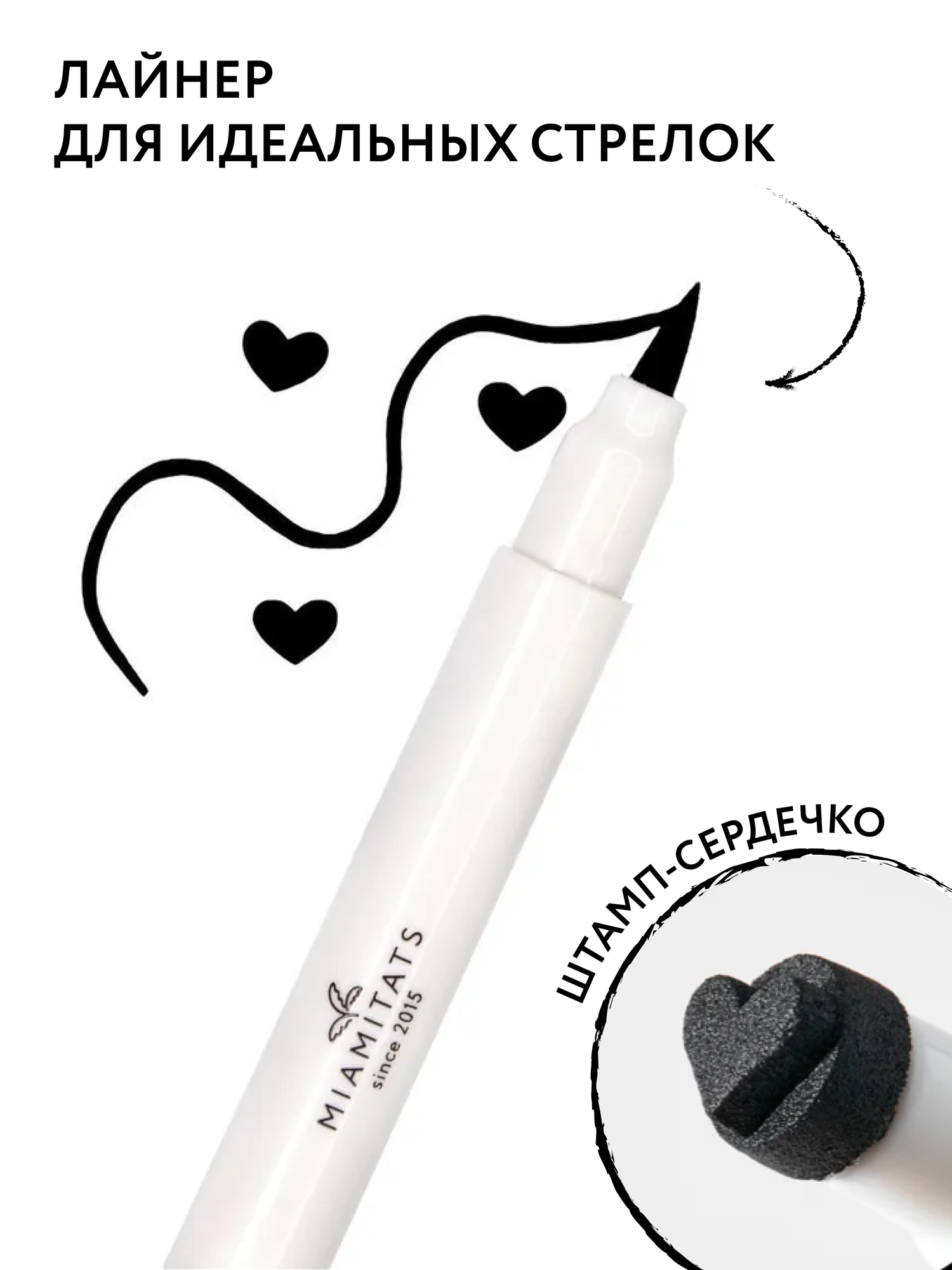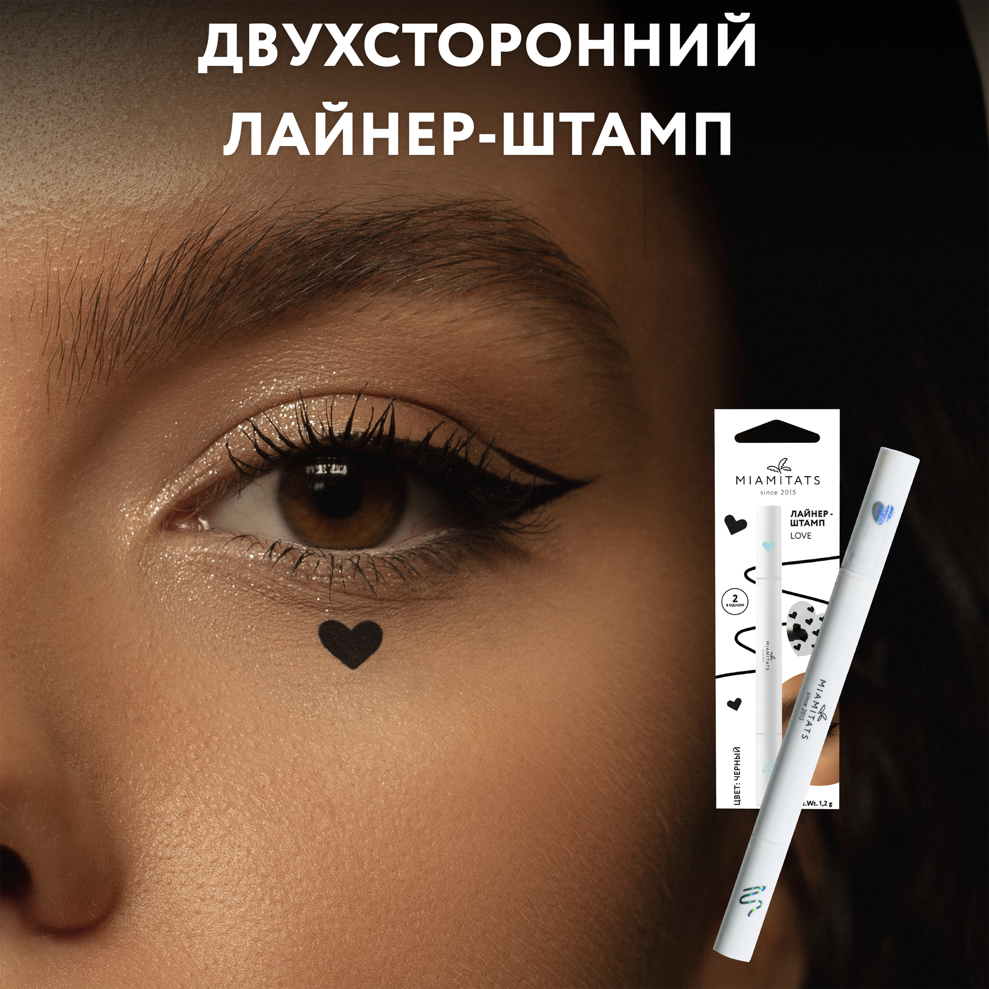 MIAMITATS Лайнер + тату-штамп (2в1) Love, подводка фломастер для глаз + тату-штамп сердечко, черная