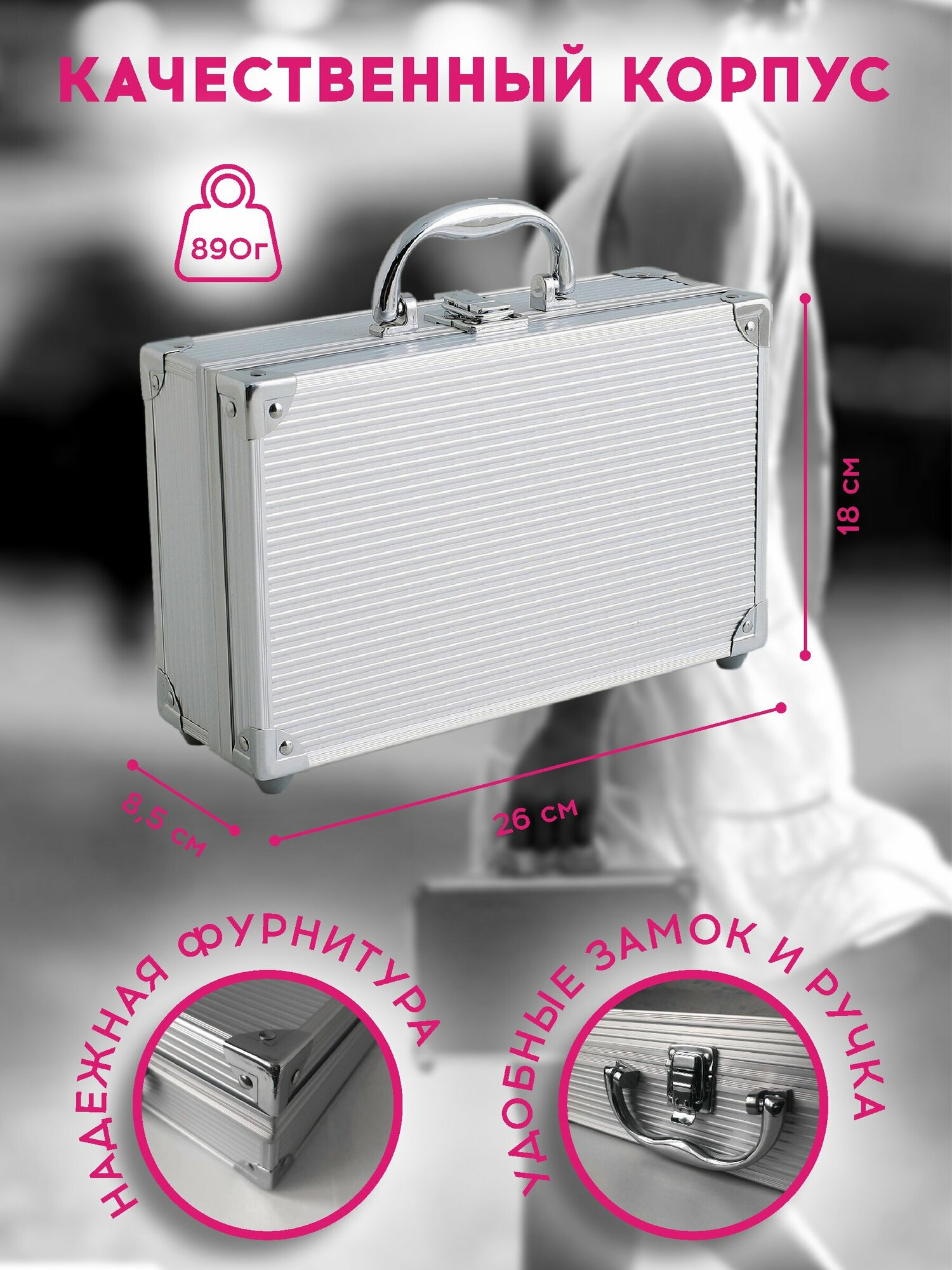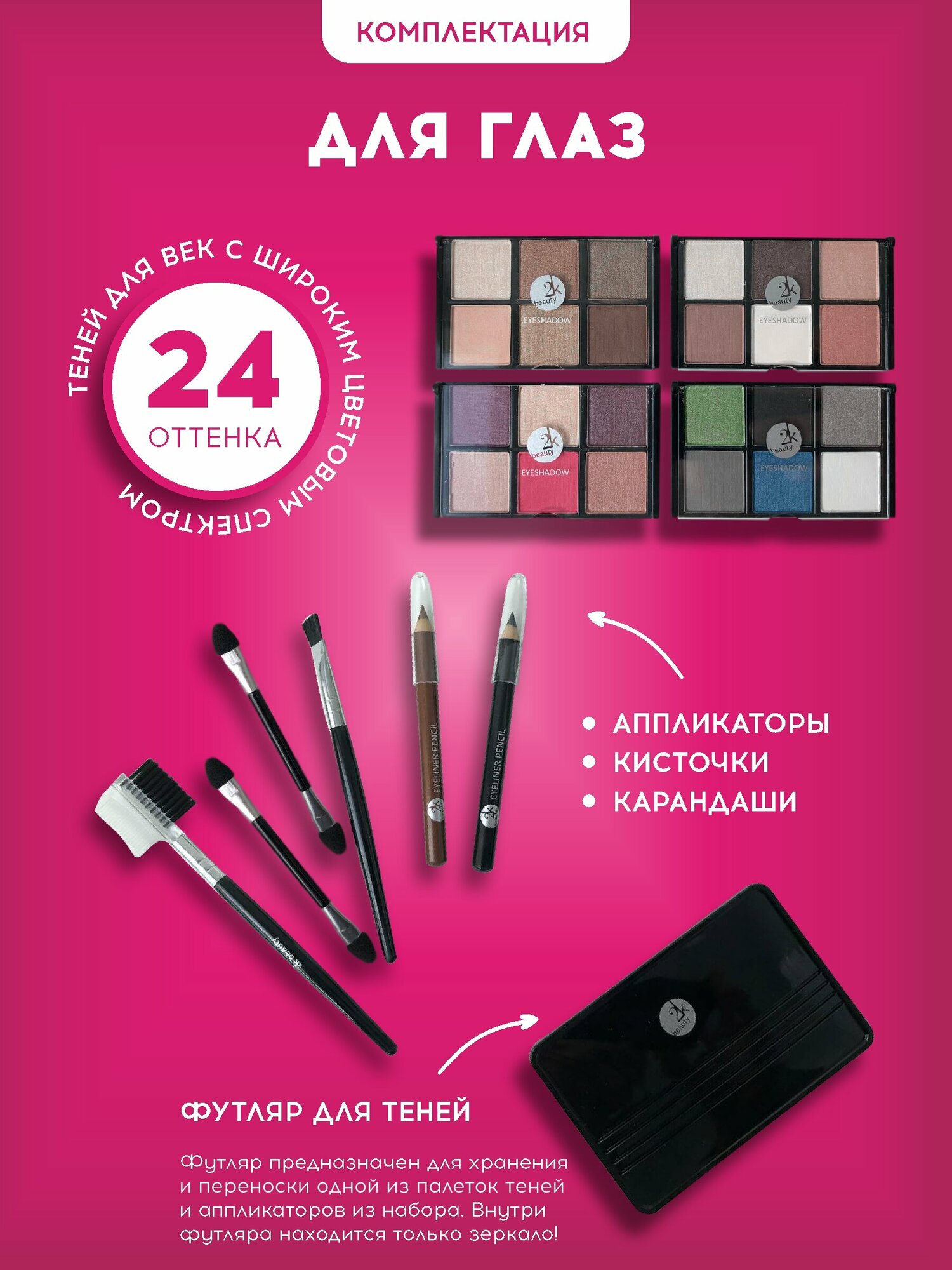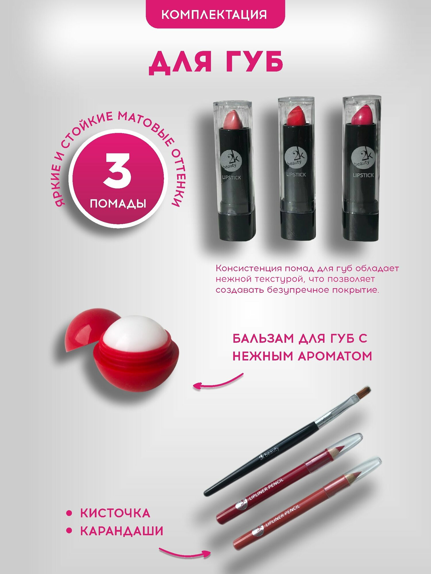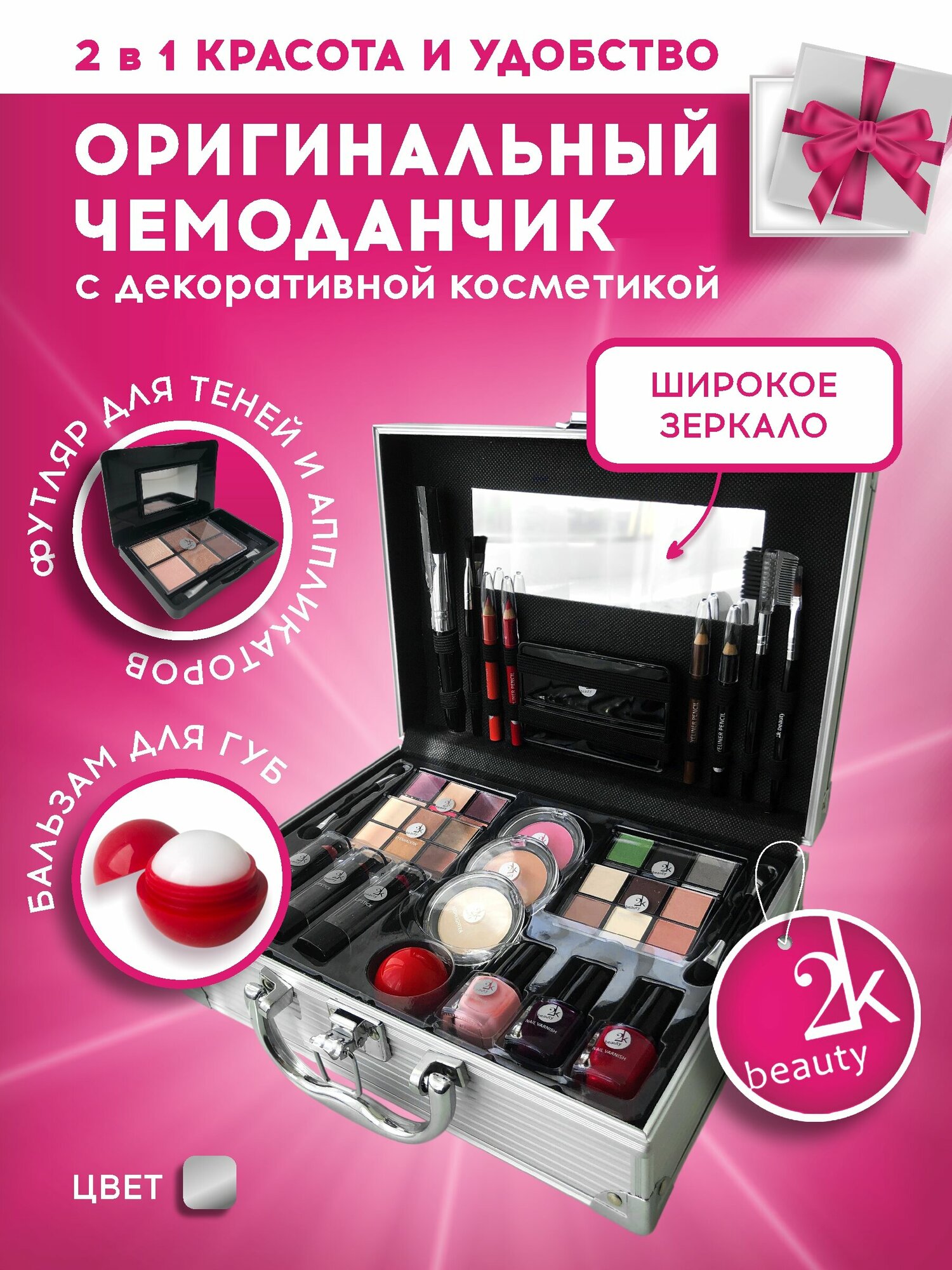 Купить Органайзер для косметики 2K Beauty: кейс, тени для глаз, помада, блеск для губ, румяна, бальзам для губ, хайлайтер / Подарочный косметический набор №2