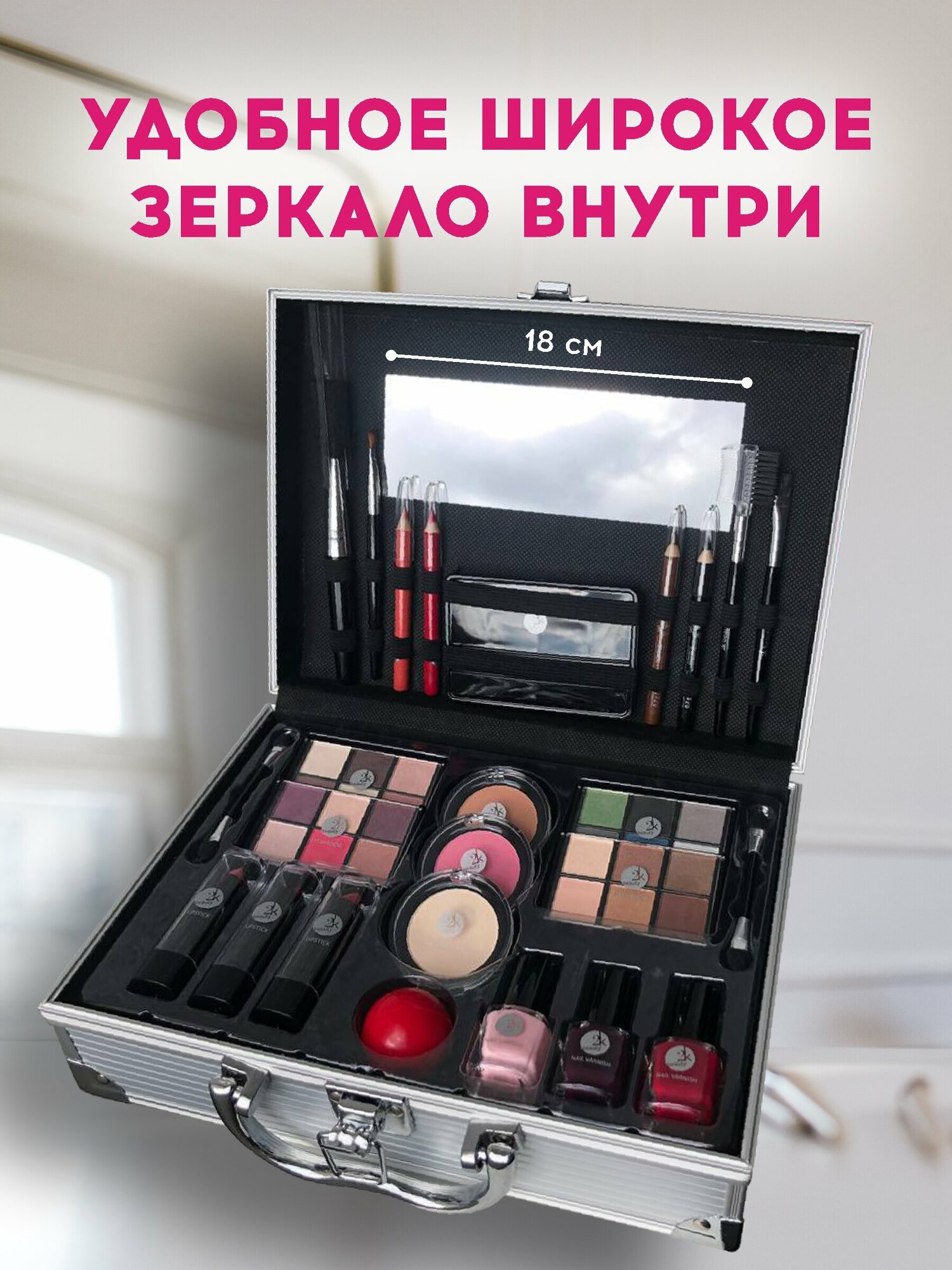 Органайзер для косметики 2K Beauty: кейс, тени для глаз, помада, блеск для губ, румяна, бальзам для губ, хайлайтер / Подарочный косметический набор №2 интересное: