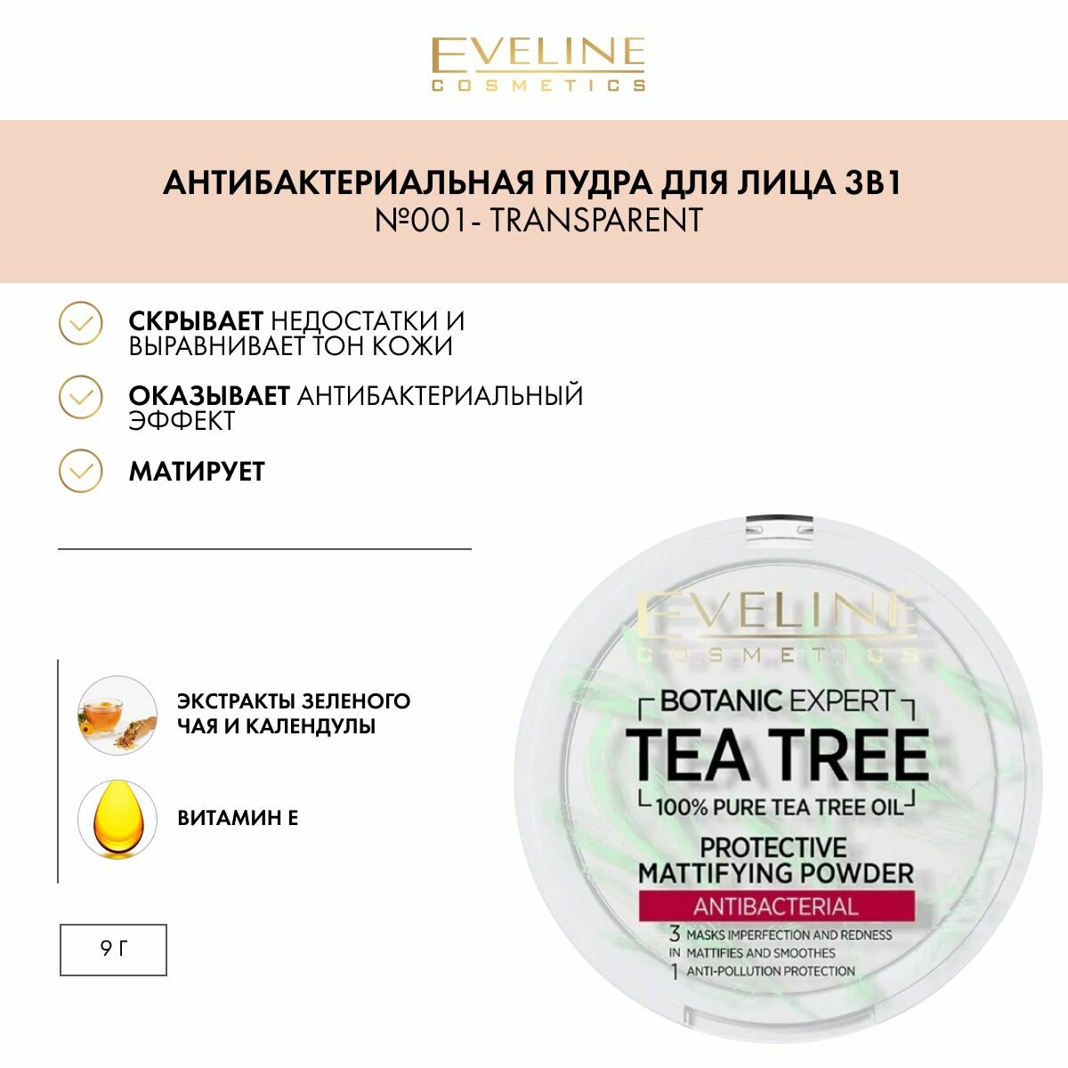 Купить EVELINE Пудра компактная для лица BOTANIC EXPERT 3 в 1 антибактериальная матирующая тон 001 transparent