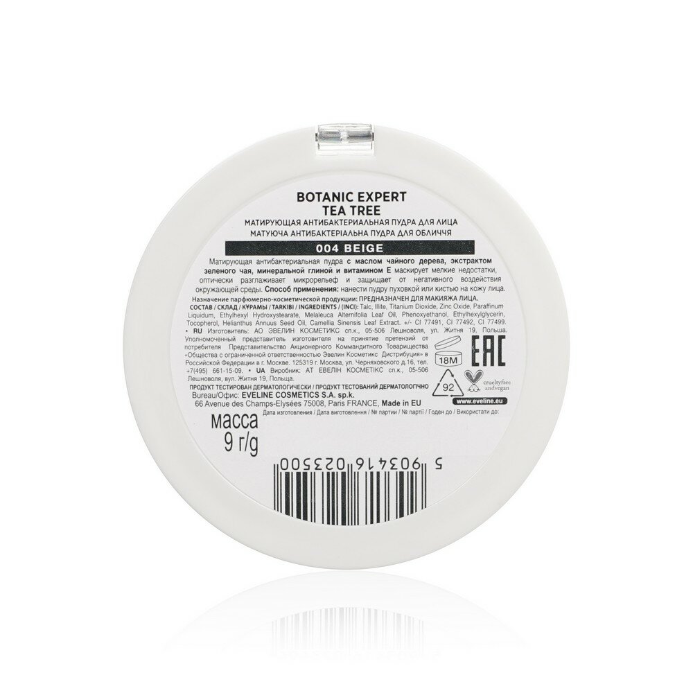 Купить EVELINE Пудра компактная для лица BOTANIC EXPERT 3 в 1 антибактериальная матирующая тон 004 beige light