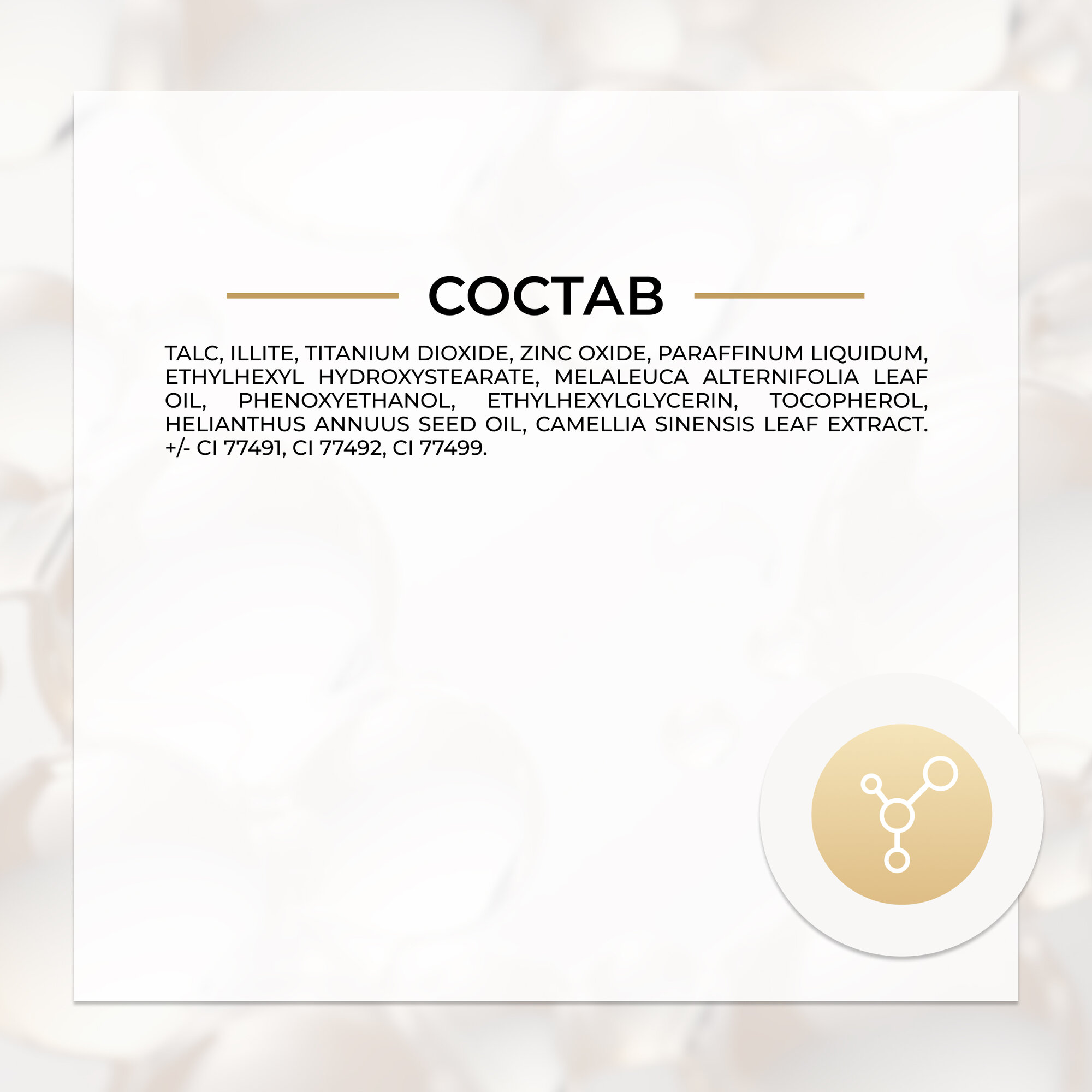 | Состав | Talc, Illite, Titanium Dioxide, Zinc Oxide, Paraffinum Liquidum, Ethylhexyl Hydroxystearate, Melaleuca Alternifolia Leaf Oil, Phenoxyethanol, Ethylhexylglycerin, Tocopherol, Helianthus Annuus Seed Oil, Camellia Sinensis Leaf Extract. +/- CI 77491, CI 77492, CI 77499. |