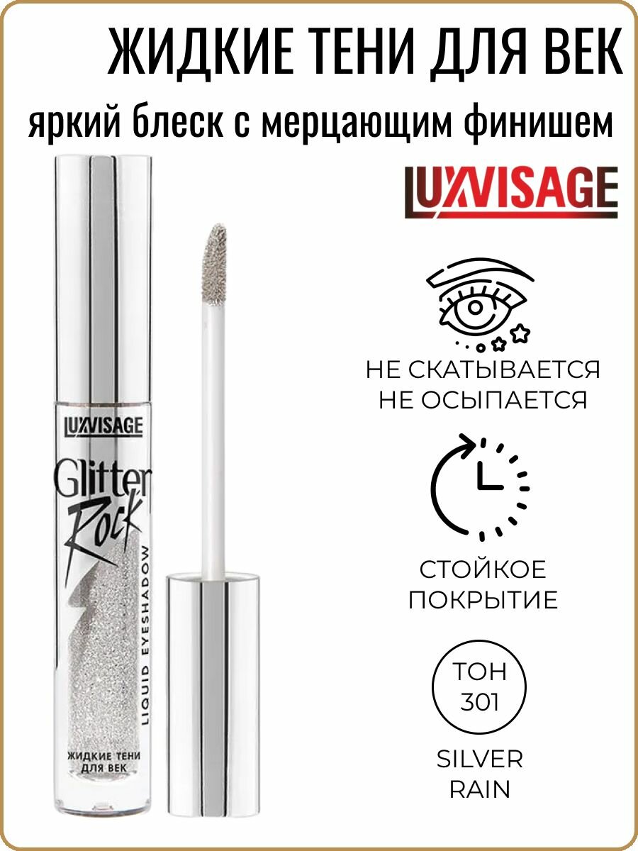 Тени для век LUXVISAGE GLITTER ROCK жидкие тон 301 silver rain