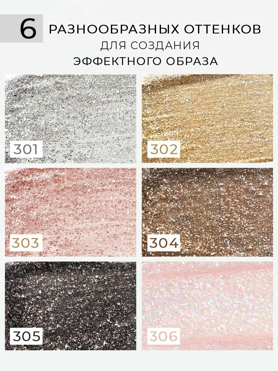 Тени для век Luxvisage Жидкие, Glitter Rock, оттенок № 306, с эффектом мерцания