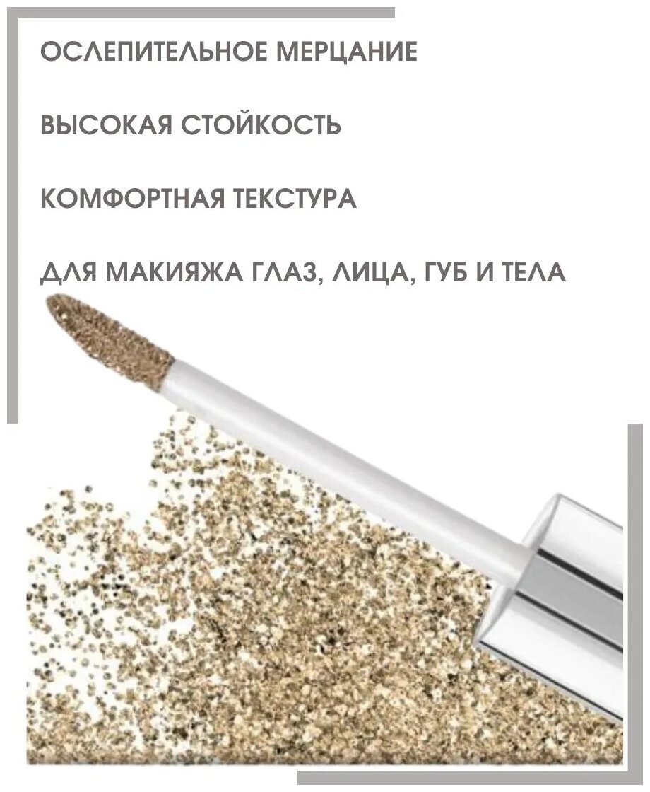 | Дополнительная информация | Можно использовать самостоятельно или наносить поверх теней для век в качестве сверкающего топ-покрытия. Легко снимаются любым средством для демакияжа. |