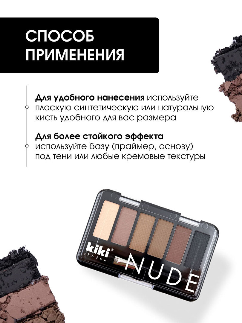 Тени для век kiki shadow NUDE, тон 906 черная жемчужина стойкая палетка 6 оттенков с кистью для растушевки матовые нюдовые, кики