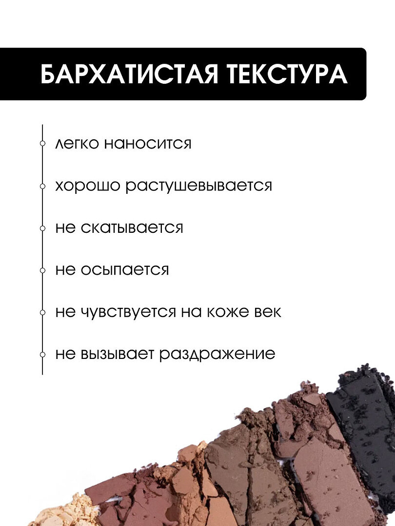 | Способ применения | Нанести цвета, дополняющие друг друга аппликатором или кисточкой, растушевать границы перехода оттенков |