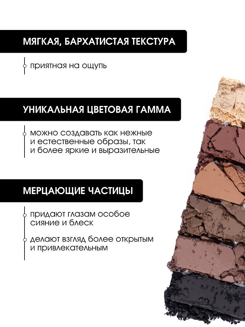 | Дополнительная информация | Тени обладают нежной, хорошо поддающейся растушевке текстурой. Благодаря удобному аппликатору макияж можно создавать буквально на ходу. |