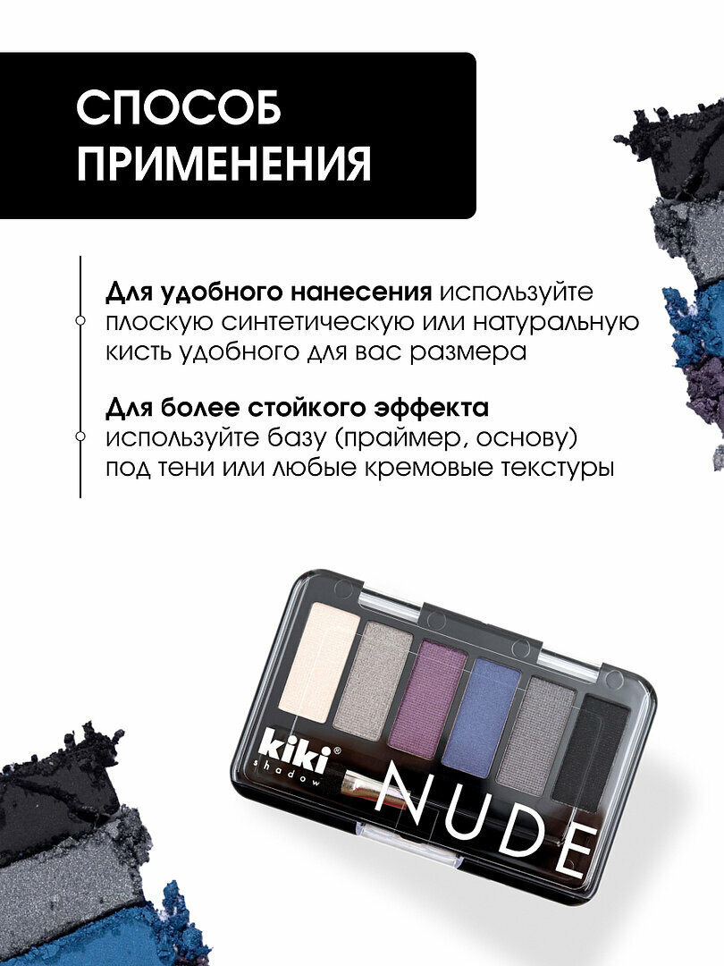Тени для век kiki shadow NUDE, тон 904 голубой топаз стойкая палетка 6 оттенков с кистью для растушевки матовые нюдовые, кики