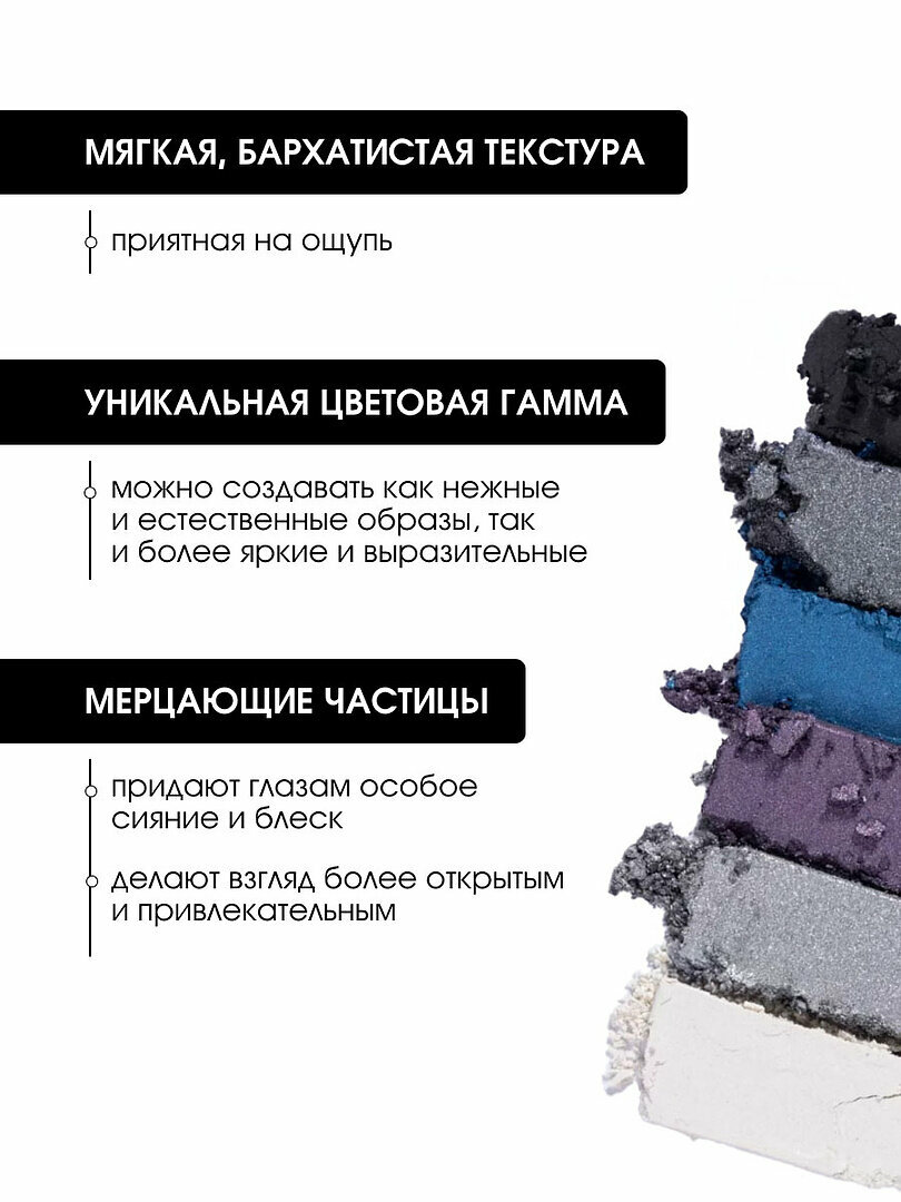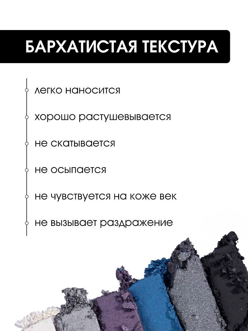 | Способ применения | Нанести цвета, дополняющие друг друга аппликатором или кисточкой, растушевать границы перехода оттенков |