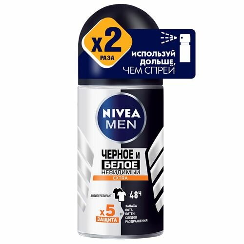 NIVEA Антиперспирант ролик Men Черное и белое Невидимый Extra, 50 мл, 155 г