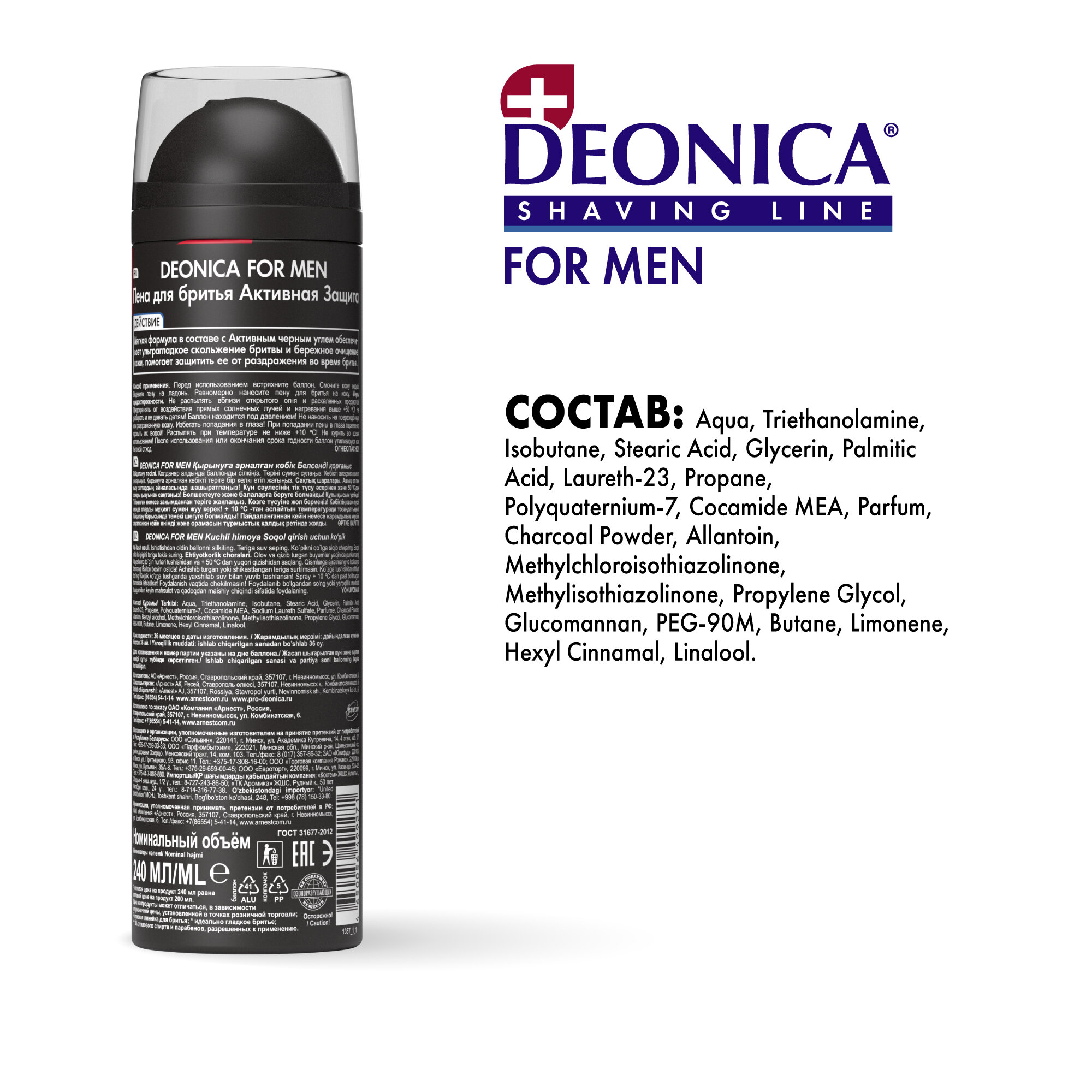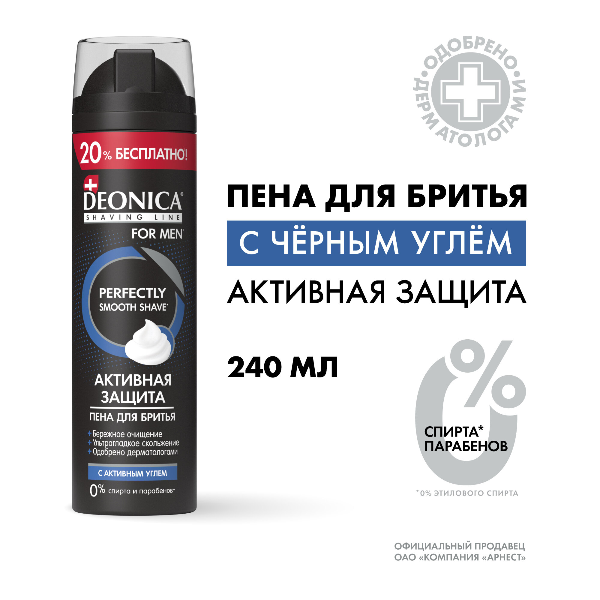 DEONICA FOR MEN Пена для бритья Активная защита с черным углём, 240 мл интересное: