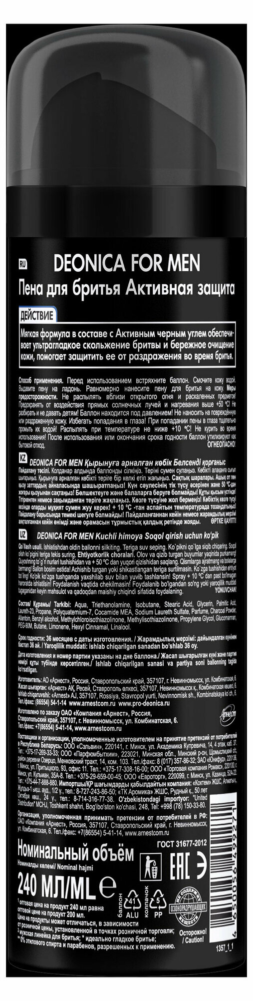 Ниже Вы можете прочитать отзывы на DEONICA FOR MEN Пена для бритья Активная защита с черным углём, 240 мл, ознакомится с подробными характеристиками, посмотреть интересные обзоры и фотографии на DEONICA FOR MEN Пена для бритья Активная защита с черным углём, 240 мл.