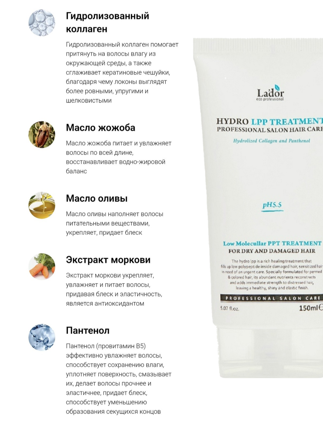 СохранитьLADOR/ Шампунь ладор для окрашенных волос восстанавливающий 150 мл и Увлажняющая маска восстанавливающая Eco Hydro Lpp Treatment 150 мл интересное: