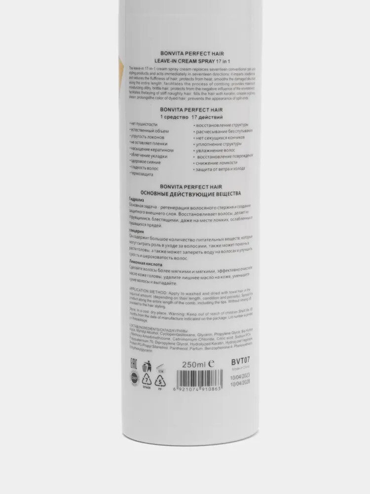 Bonvita Professional Спрей для мгновенного восстановления волос 17 в 1, 250 мл. интересное: