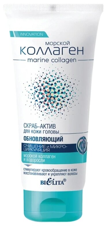 Купить Bielita морской коллаген marine collagen Скраб-актив для кожи головы обновляющий "Очищение и микроциркуляция" для волос и кожи головы, 150 мл