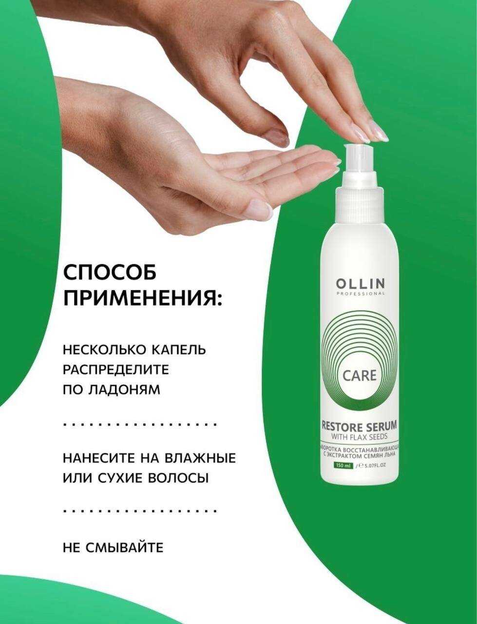 Сыворотка для волос Ollin Professional Care Восстанавливающая, с экстрактом семян льна, 150 мл