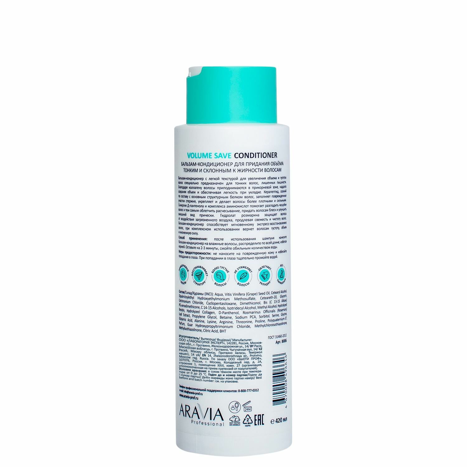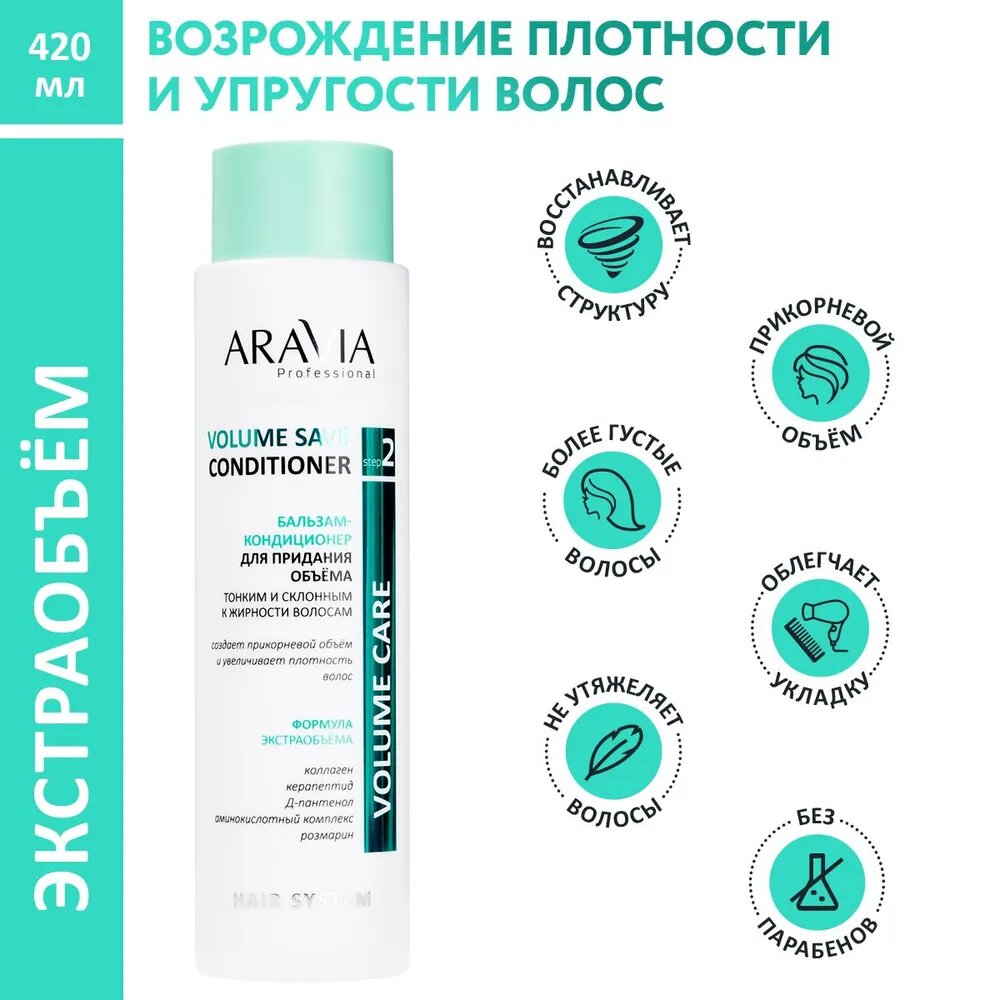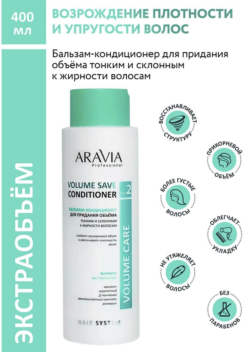 Бальзам-кондиционер ARAVIA PROFESSIONAL для придания объема тонким и склонным к жирности волосам Volume Save Conditioner, 400 мл