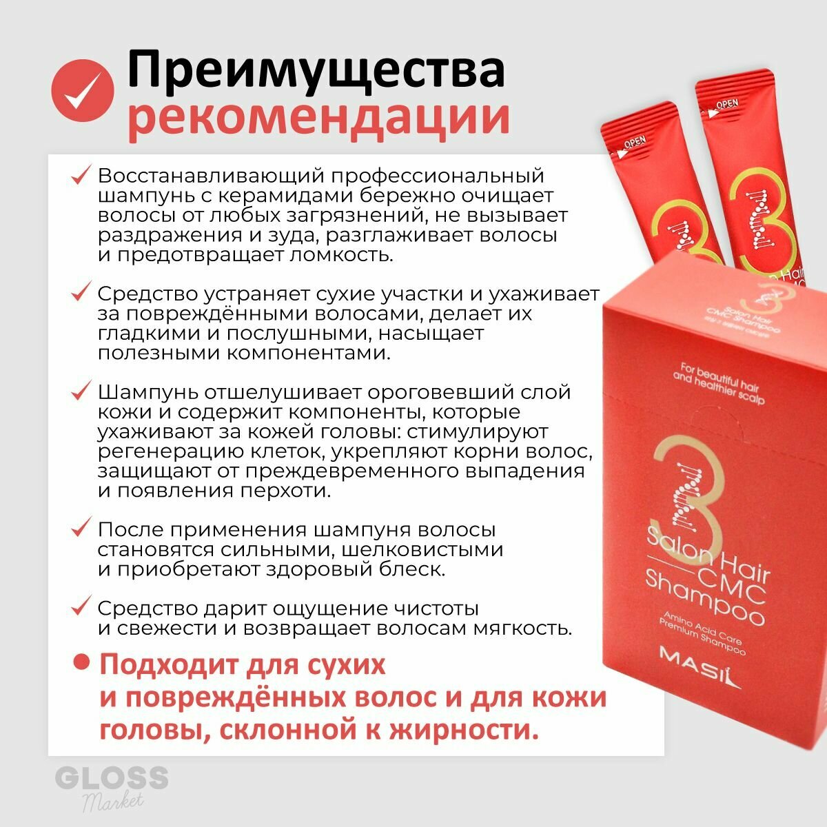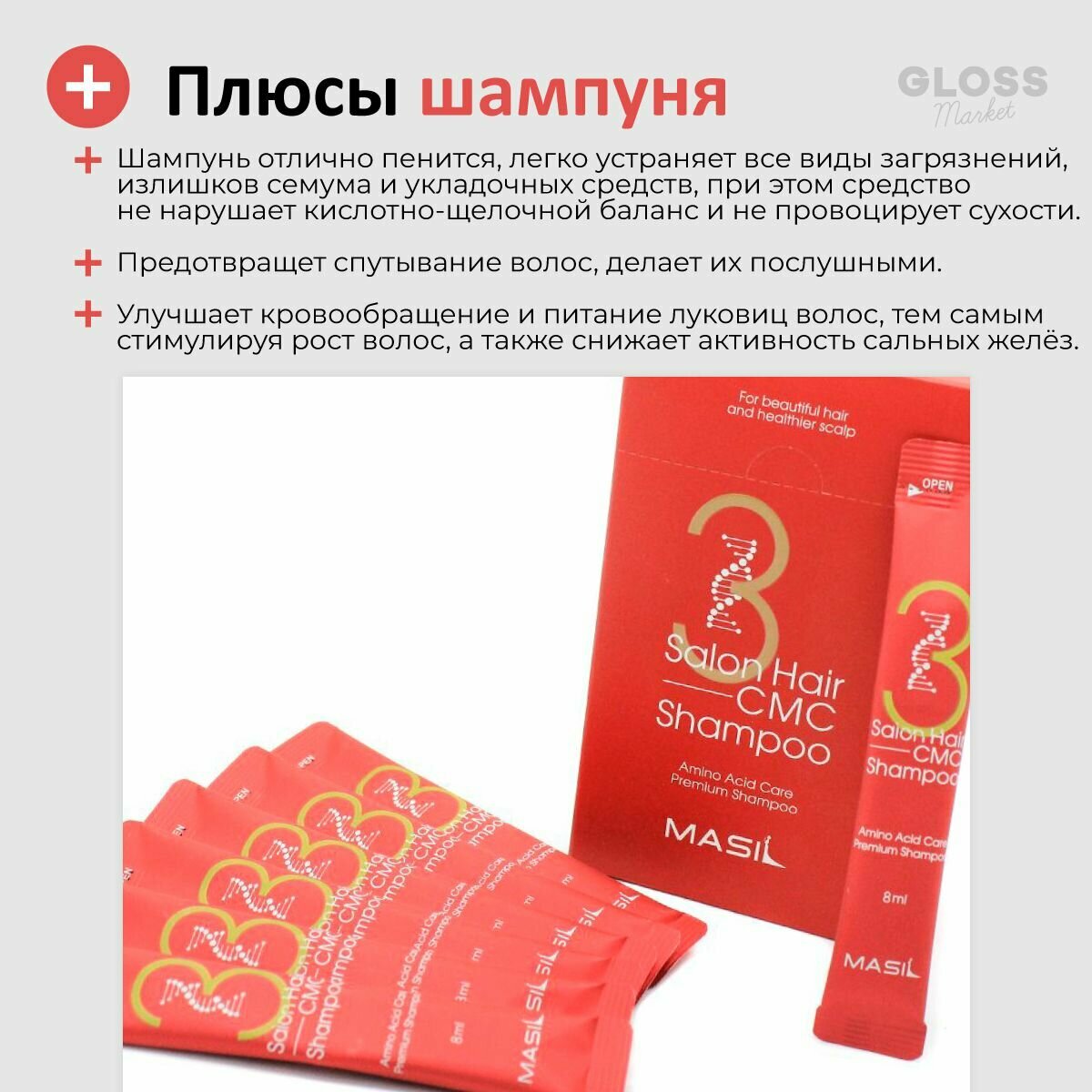 MASIL 3 SALON HAIR CMC SHAMPOO Восстанавливающий шампунь для волос с аминокислотами 8мл*5шт