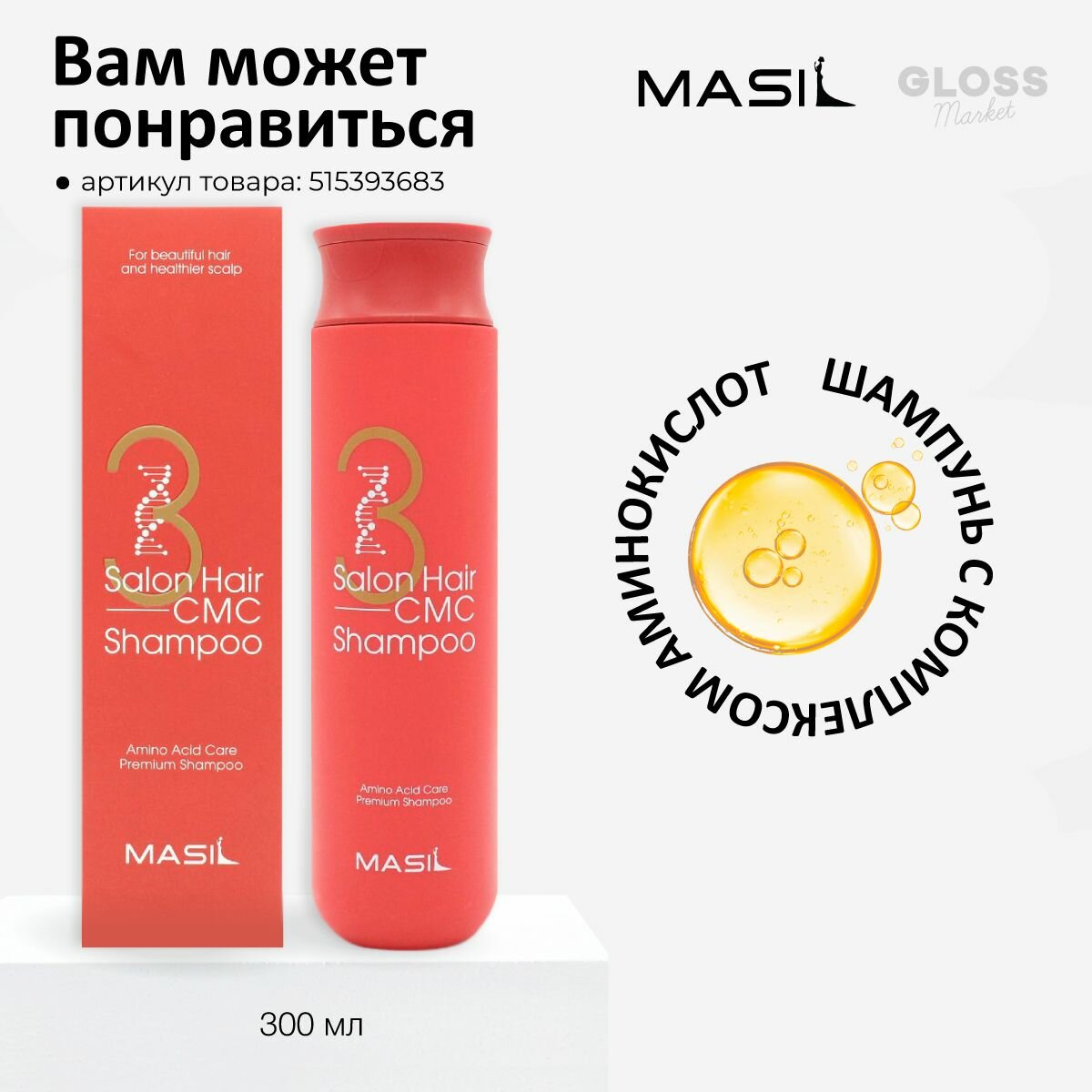 Masil Шампунь для волос с аминокислотами Masil 3 Salon Hair Cmc Shampoo, 300 мл