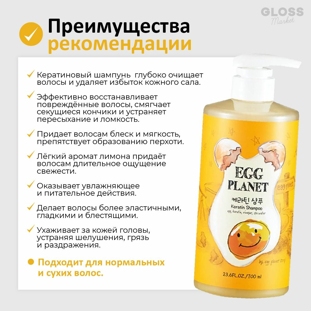 Шампунь для волос EGG PLANET с кератином 700 мл интересное:
