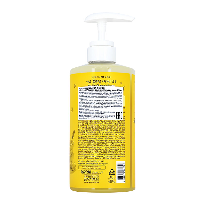 Egg Planet шампунь Keratin с кератином для поврежденных волос, 700 мл