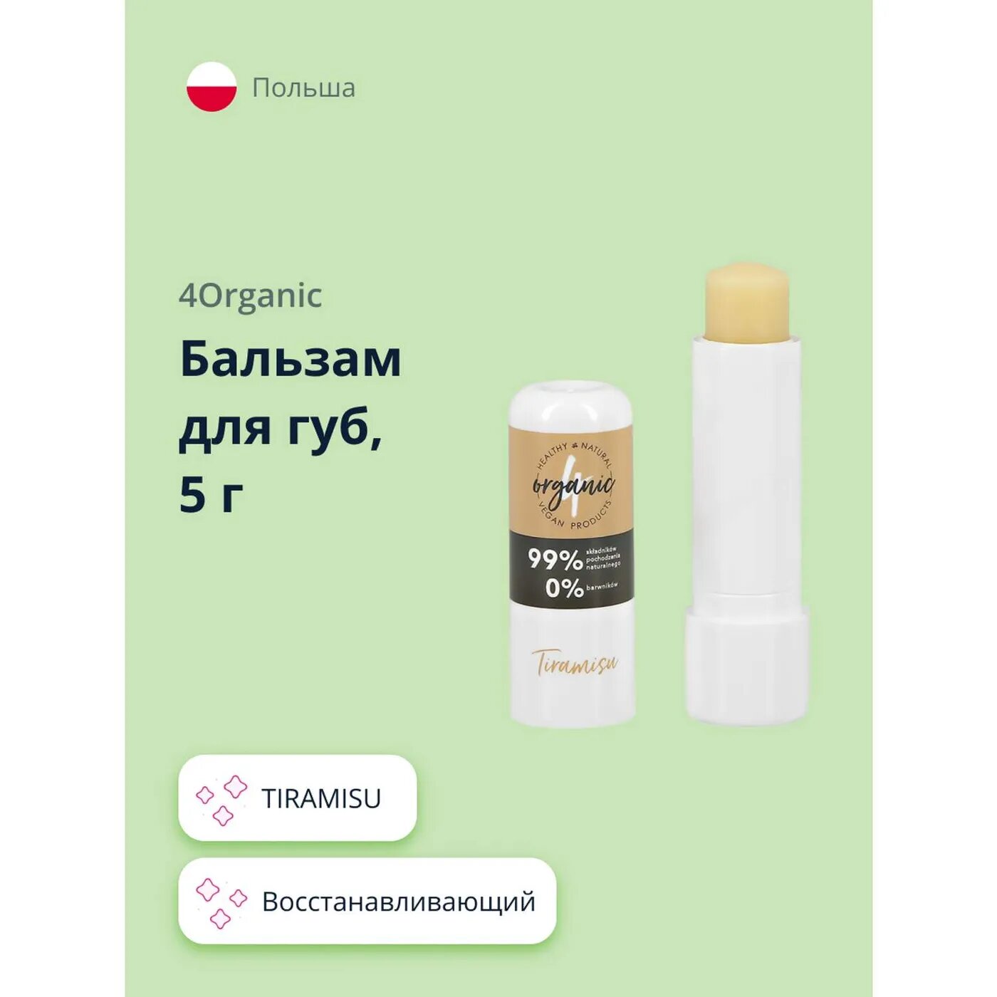 Купить Бальзам для губ 4ORGANIC TIRAMISU (восстанавливающий) 5 г
