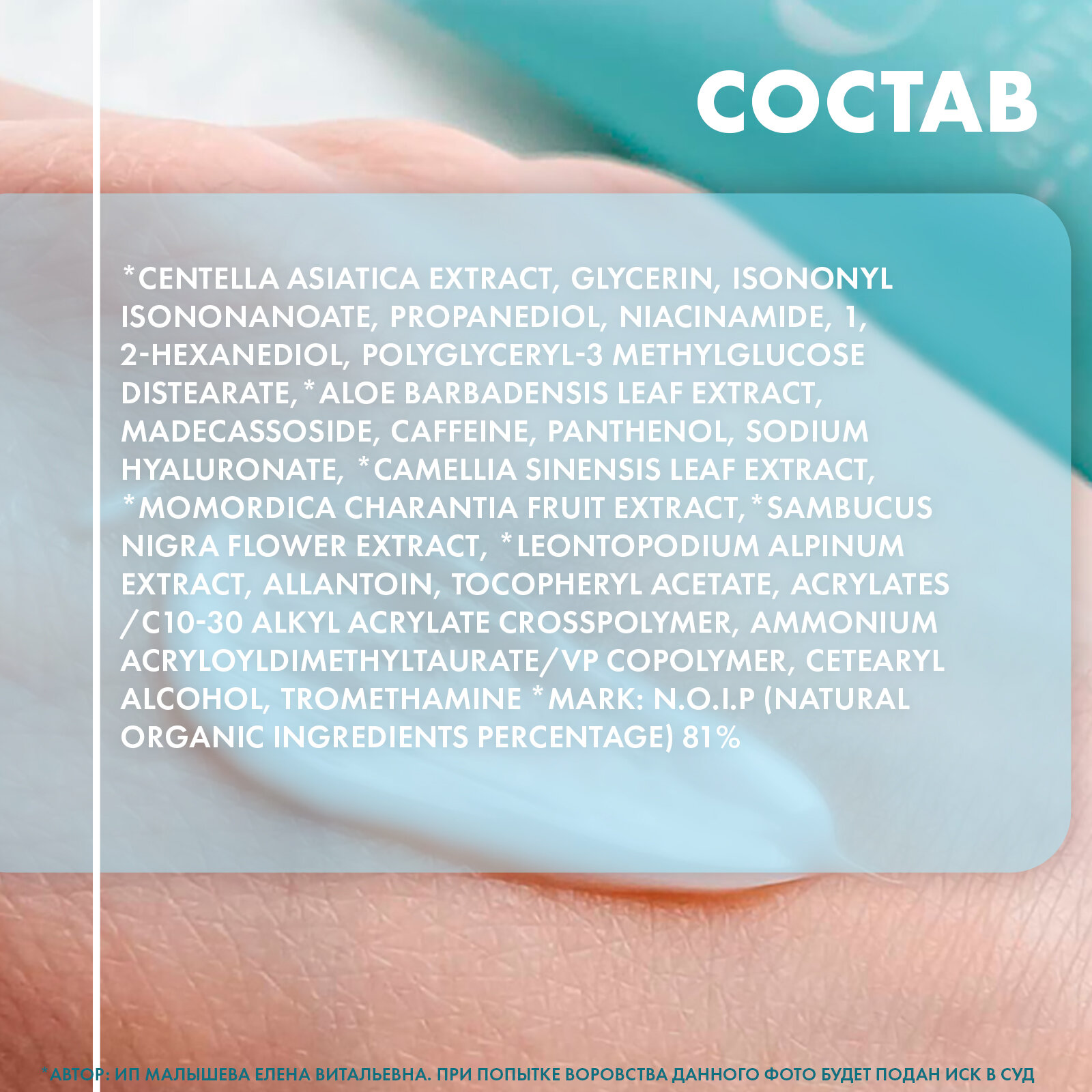 | Состав | *Centella Asiatica Extract, Glycerin, Isononyl Isononanoate, Propanediol, Niacinamide, 1,2-Hexanediol, Polyglyceryl-3 Methylglucose Distearate,*Aloe Barbadensis Leaf Extract, Caffeine, Panthenol, Sodium Hyaluronate,*Camellia Sinensis Leaf Extract,*Momordica Charantia Fruit Extract,*Sambucus Nigra Flower Extract,*Leontopodium Alpinum Extract, Allantoin, Tocopheryl Acetate, Acrylates /C10-30 Alkyl Acrylate Crosspolymer, Ammonium Acryloyldimethyltaurate/VP Copolymer, Cetearyl Alcohol, Tromethamine *Mark: N.O.I.P (Natural Organic Ingredients Percentage) 81% |