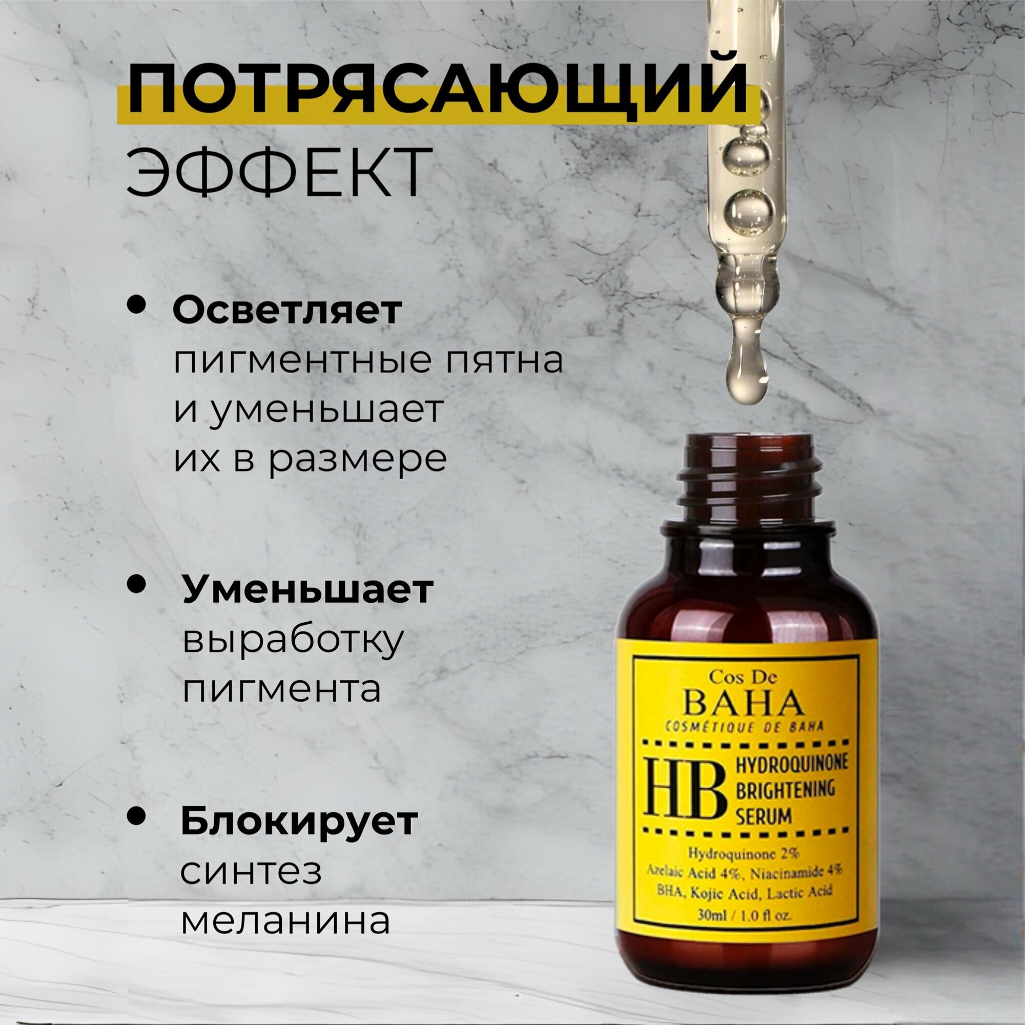 COS DE BAHA Сыворотка для борьбы с пигментацией. Hydroquinone2% serum (HB), 30 мл.