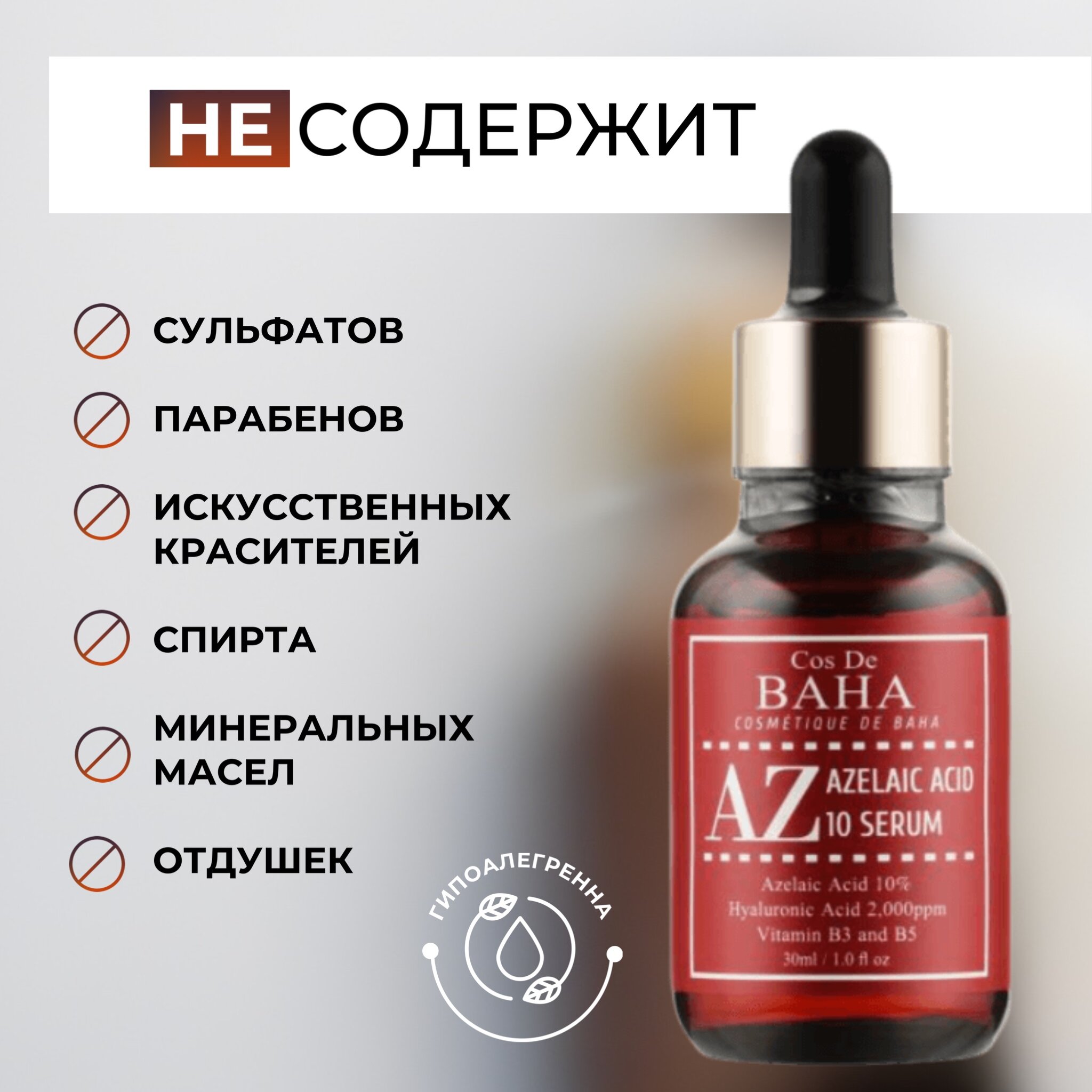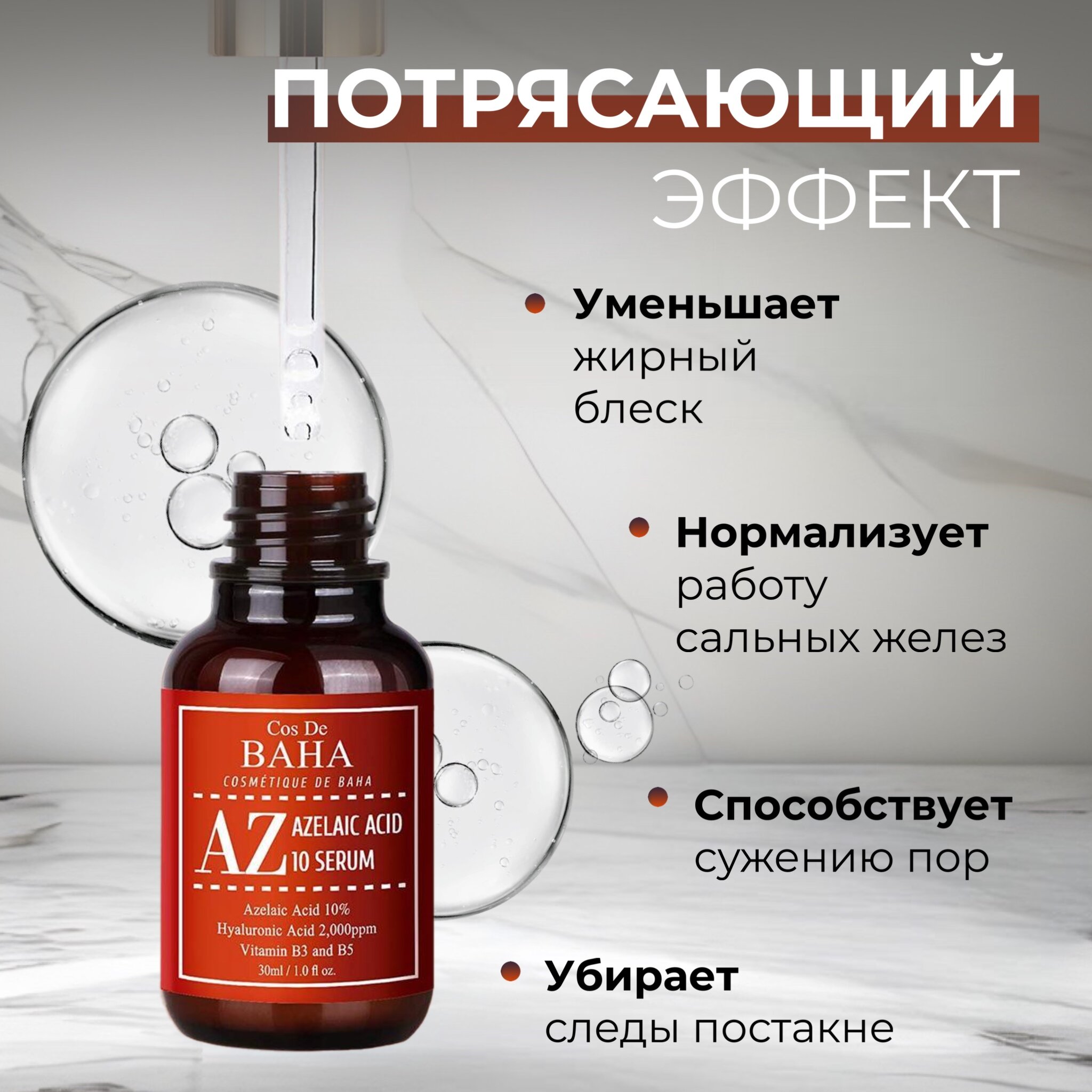 COS DE BAHA AZ Azelaic Acid 10 Serum сыворотка для лица с азелаиновой кислотой, 30 мл