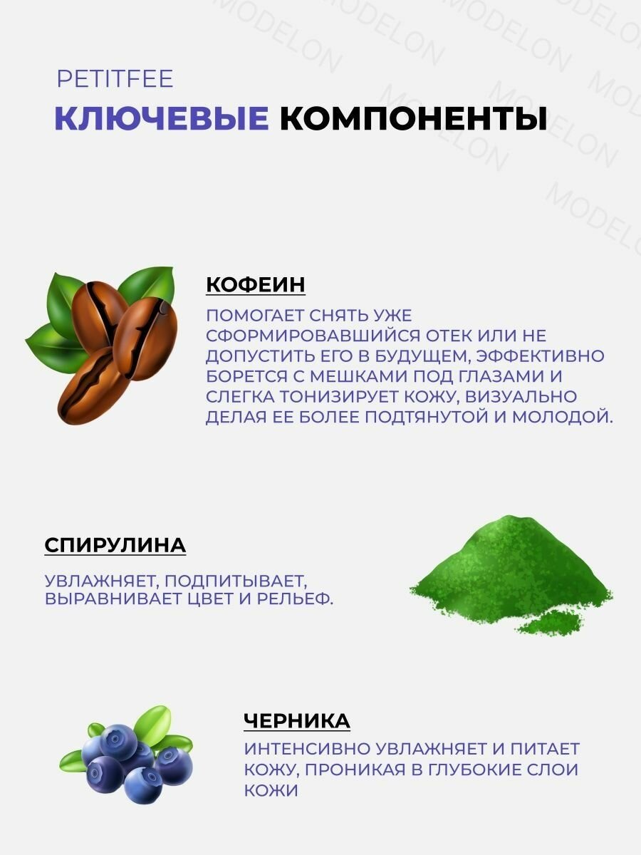 | Дополнительная информация | Сухость, тусклость, отечность, потеря тонуса – с этими неприятностями справяится охлаждающая гидрогелевая маска. |