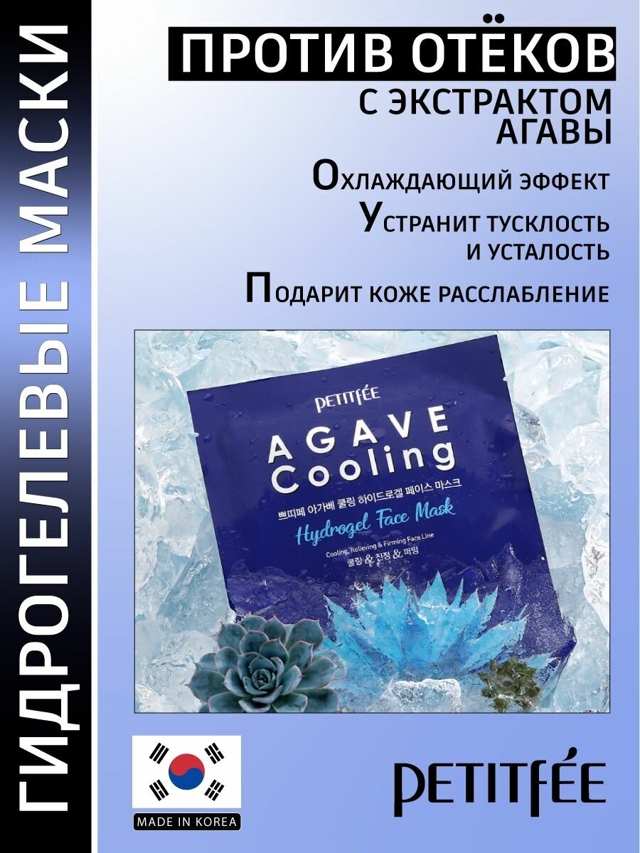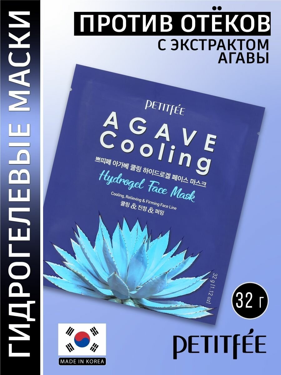Petitfee Охлаждающая гидрогелевая маска для лица с экстрактом агавы Agave Cooling Hydrogel Face Mask, 160 г, 32 мл, 5 уп.