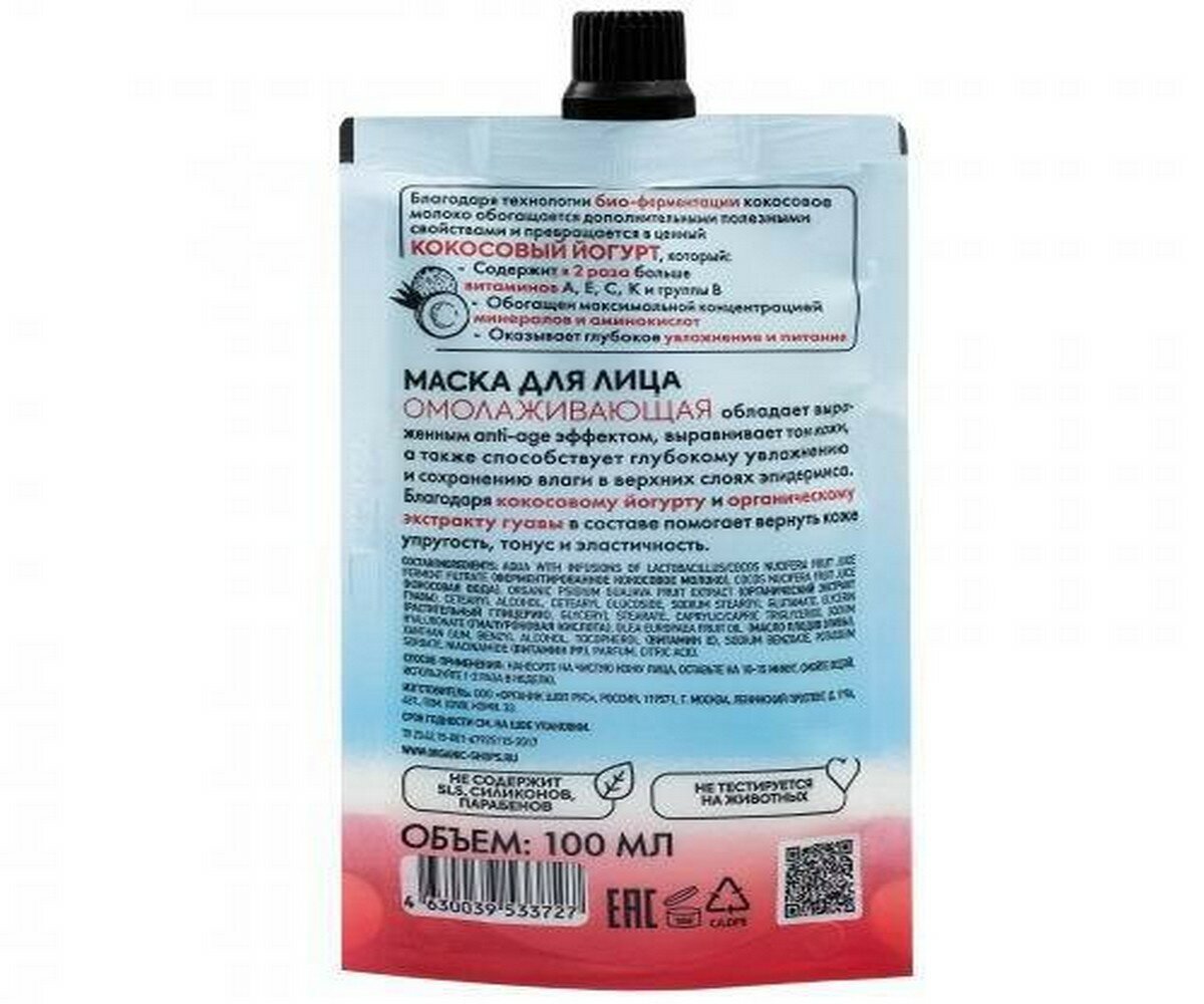 Маска для лица ORGANIC SHOP Coconut yogurt Омолаживающая, 100 мл интересное: