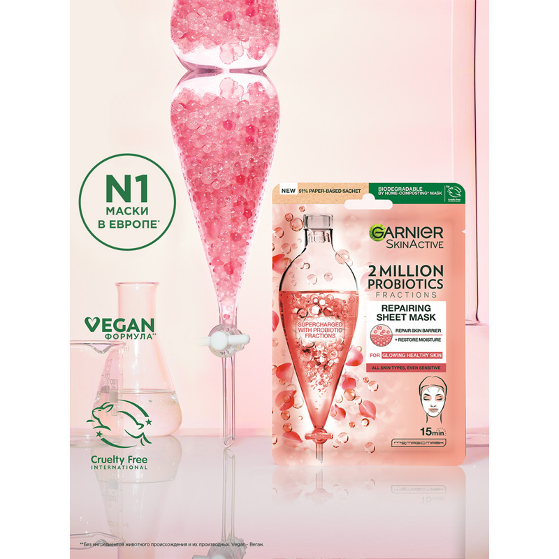 Маска для лица тканевая Garnier Skin Naturals Восстанавливающая с Пробиотиками 22 г интересное: