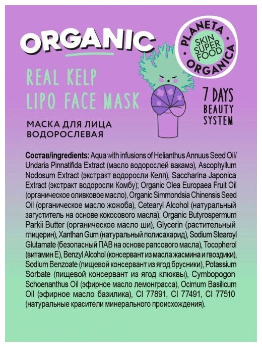 Planeta organica Маска для лица SKIN SUPER FOOD водорослевая 100 мл интересное: