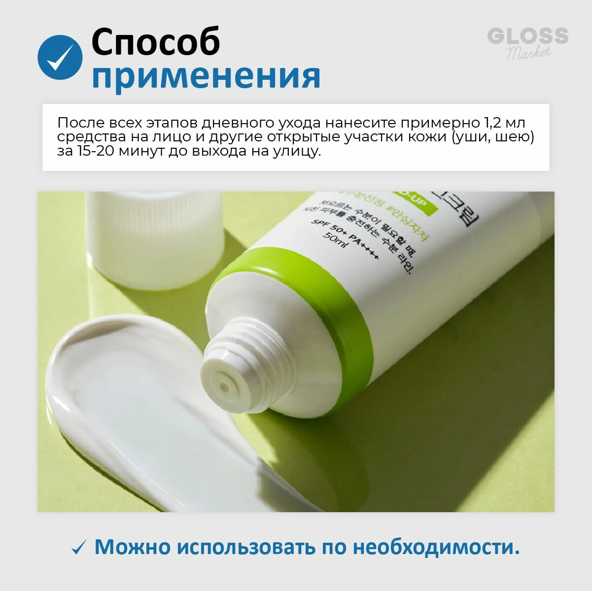| Способ применения | Равномерно распределить крем по поверхности лица на последнем этапе процедуры по уходу за кожей в количестве 1/2 чайной ложки на область лица и шеи. Рекомендуется наносить средство не менее чем за полчаса до выхода на улицу. |